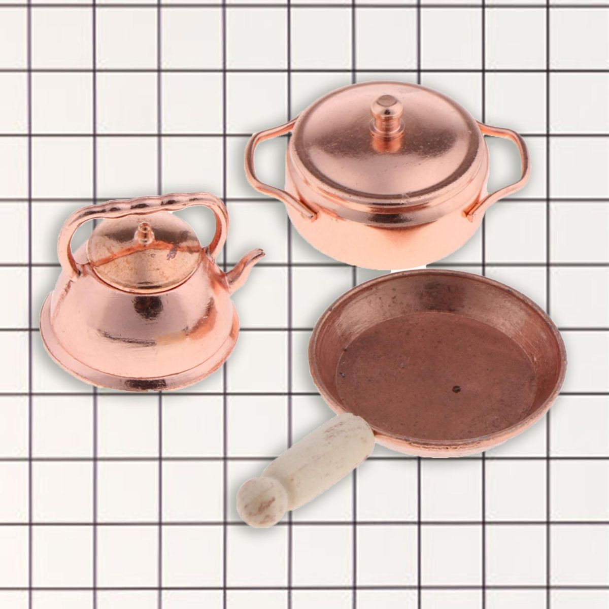 This is a dollhouse pot kitchenwares set, including dollhouse pan, dollhouse kettle, dollhouse double ear pot.