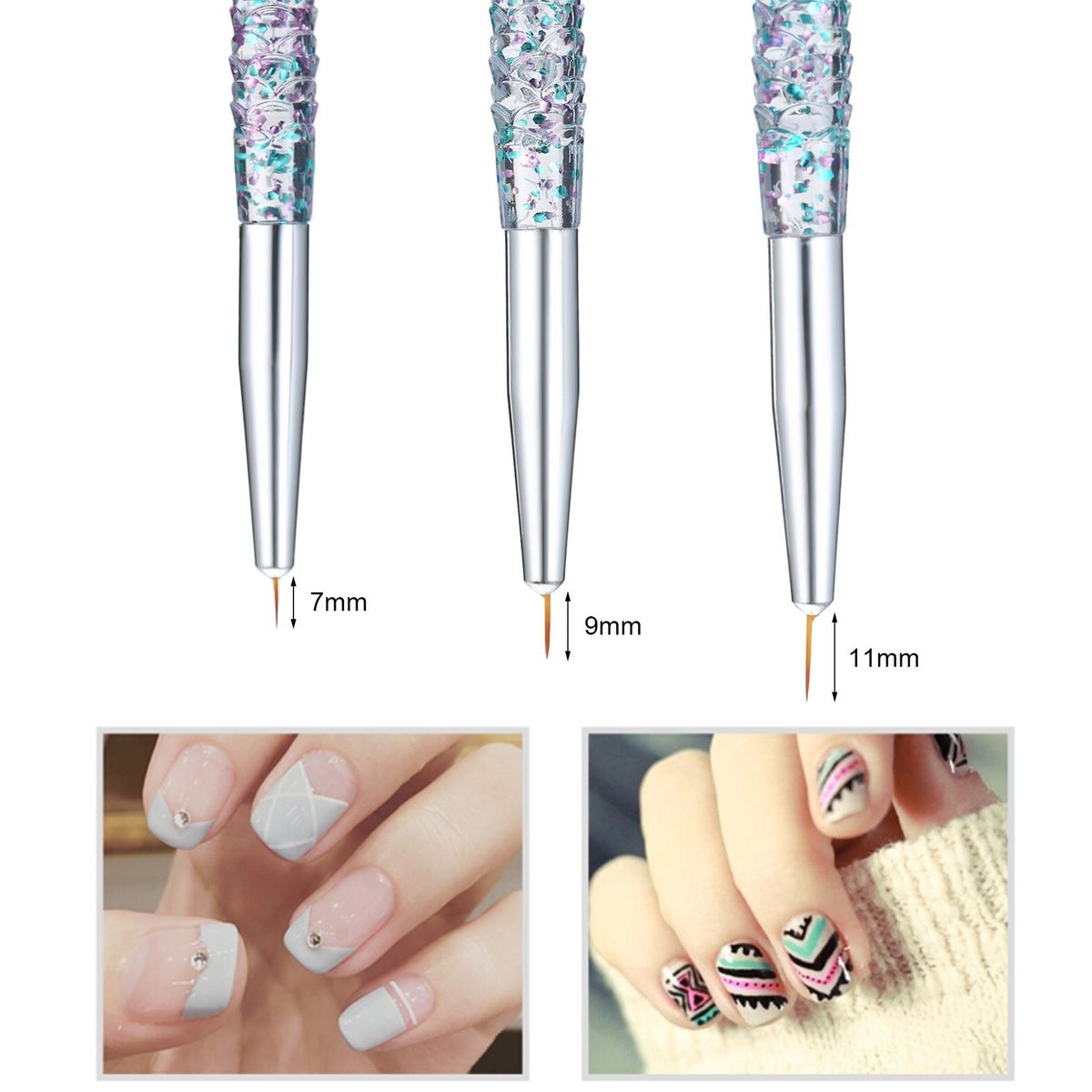 3pcs of nail brushes in various length, 7mm, 9mm, 11mm, meeting your basic needs.