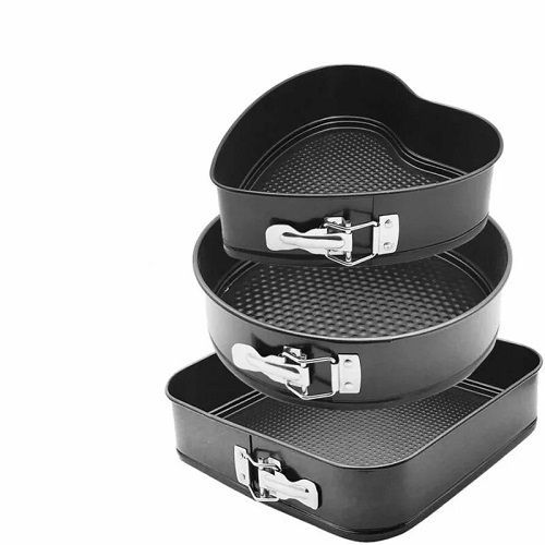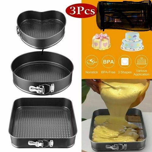Our nonstick & leak proof cake pan set is made of foodm grade stainless steel with BPA free non stick coating, which is safe to work with microwave oven.The non-stick surfaces the pans make it easier for you to take the cake out without damaging its structure or texture.its spring latch offers a tight leak-proof seal.There are 2- size cake pans pet (9inch, 10inch,11inch) in different shapes 9HEART, ROUND, SQUARE) making it ideal for all types of cake and so on.