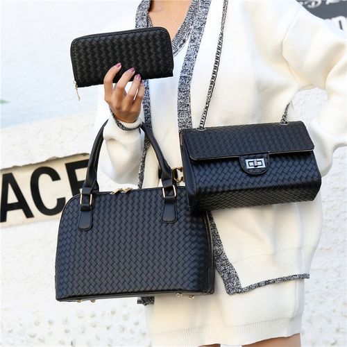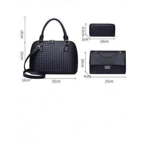 3pcs Black Shoulder Bag Women PU Leather Crossbody Bag Casual Baguette Bags Female Designer Handbag Fashion Girls Purse