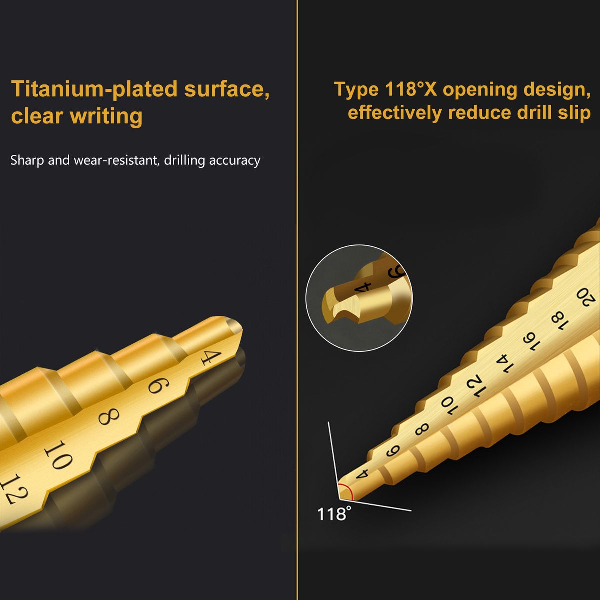 Made of high-quality high-speed steel and Titanium coating, wear-resistant, not easy to rust, has a long service life. hard and sharp enough to drill through wood, plastic, steel, and sheet metal.