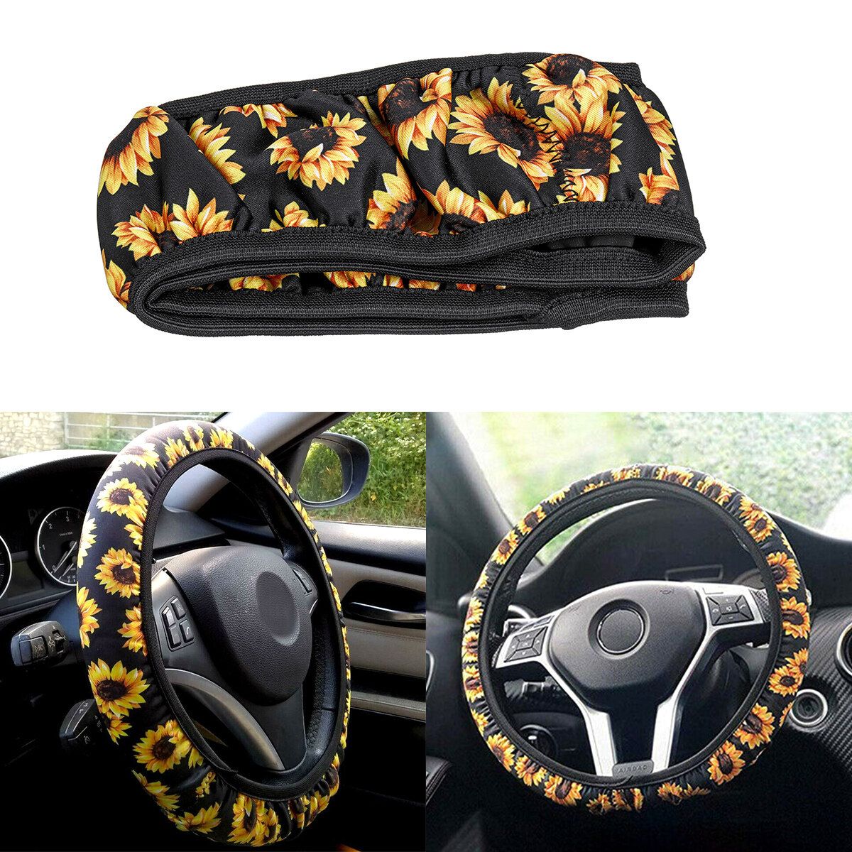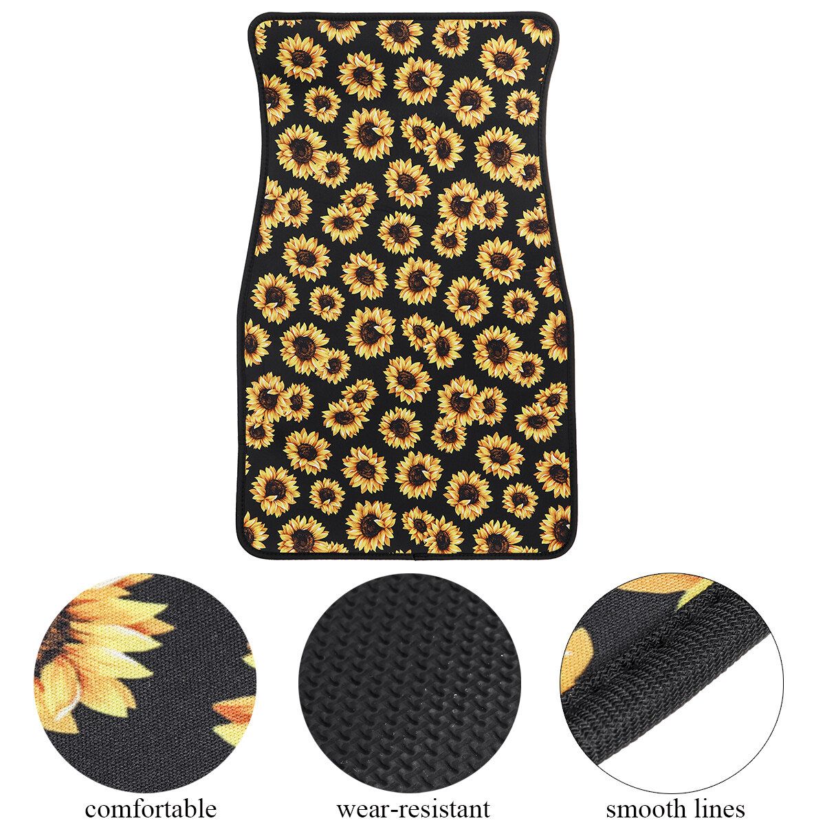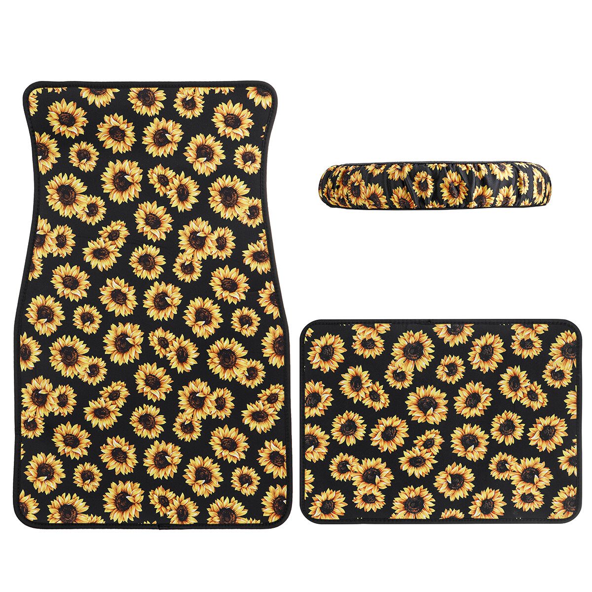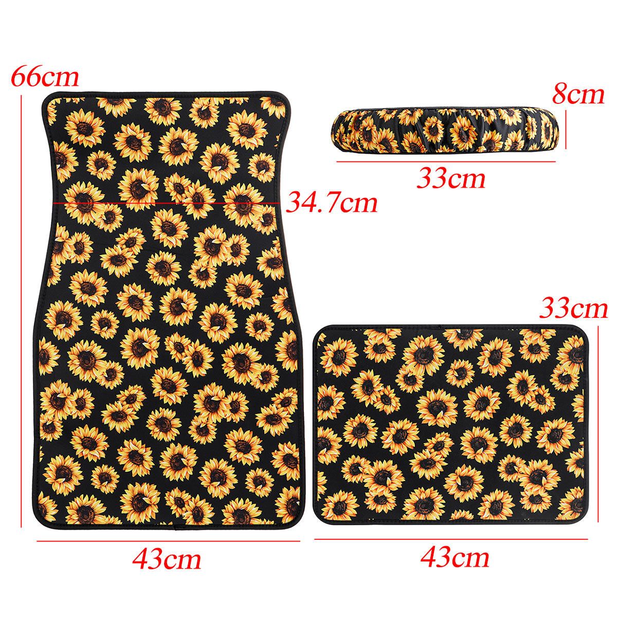 3PCS Sunflower Car Floor Mats Front Rear Steering Wheel Cover Non-Slip Universal