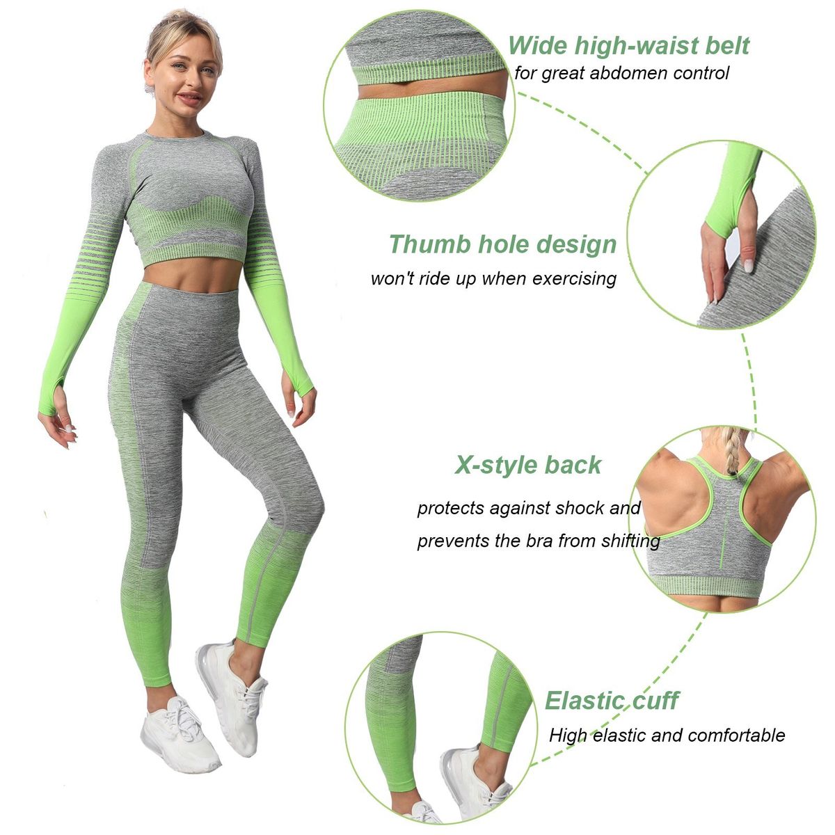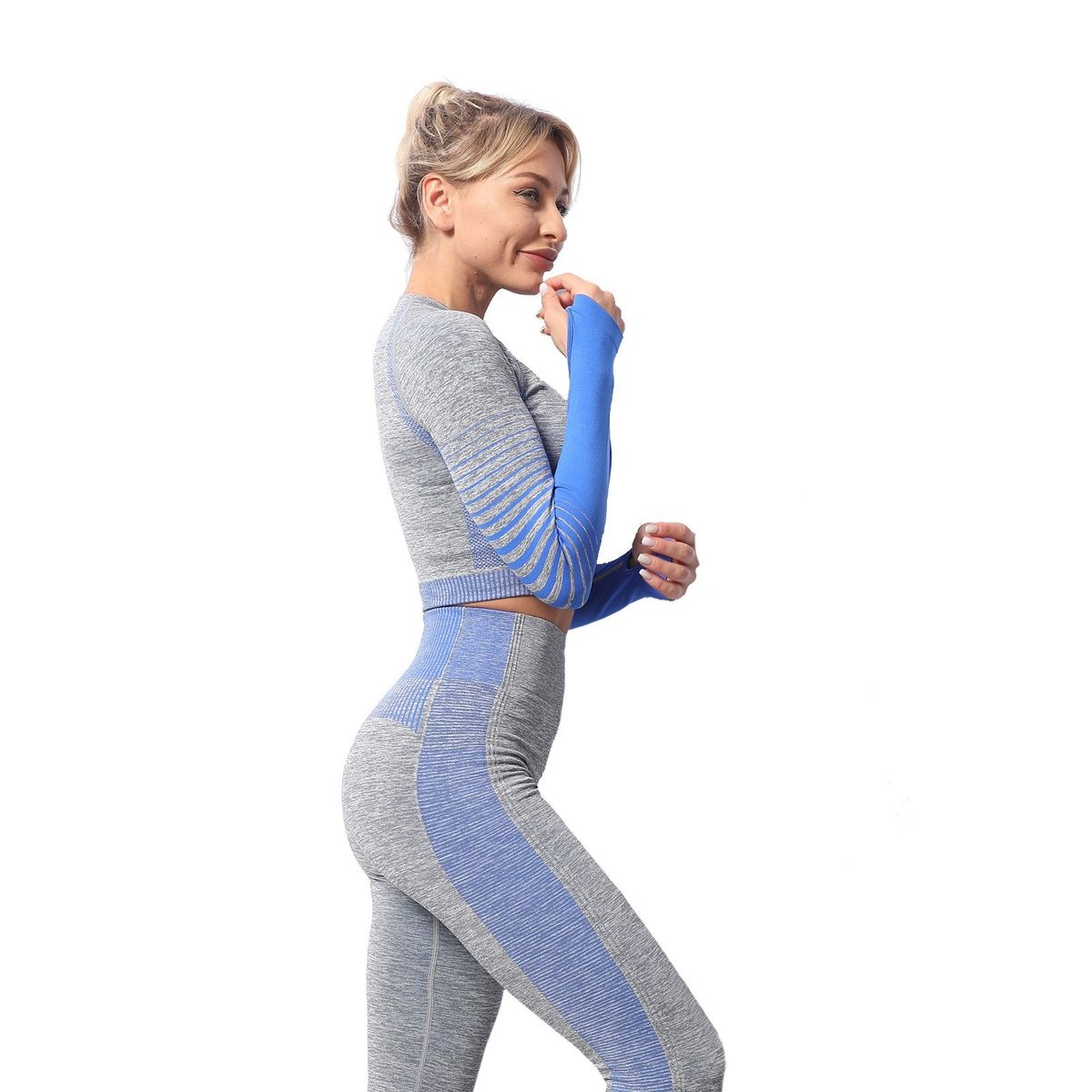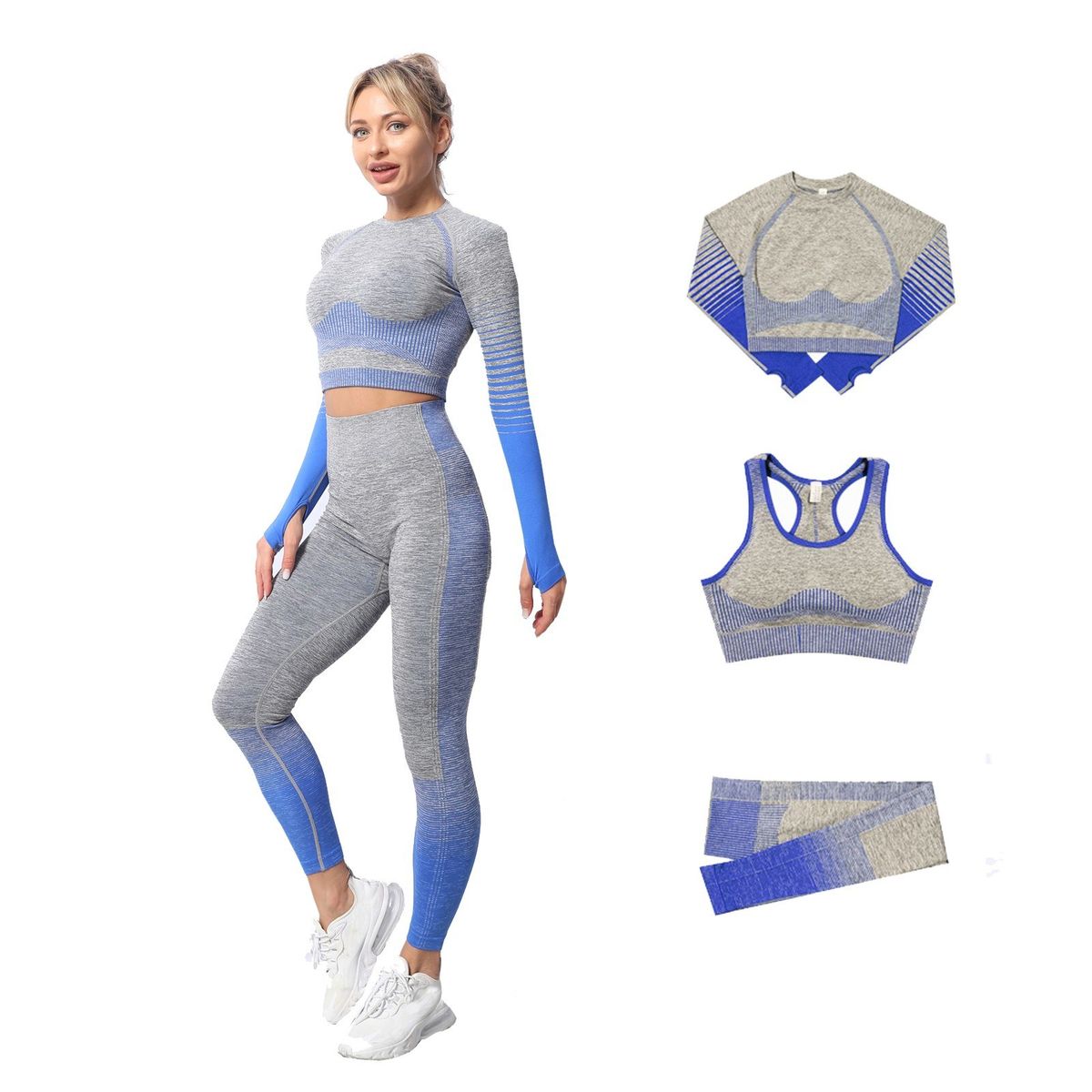 Professional tracksuit set for women, including a bra, long sleeve shirt and leggings.