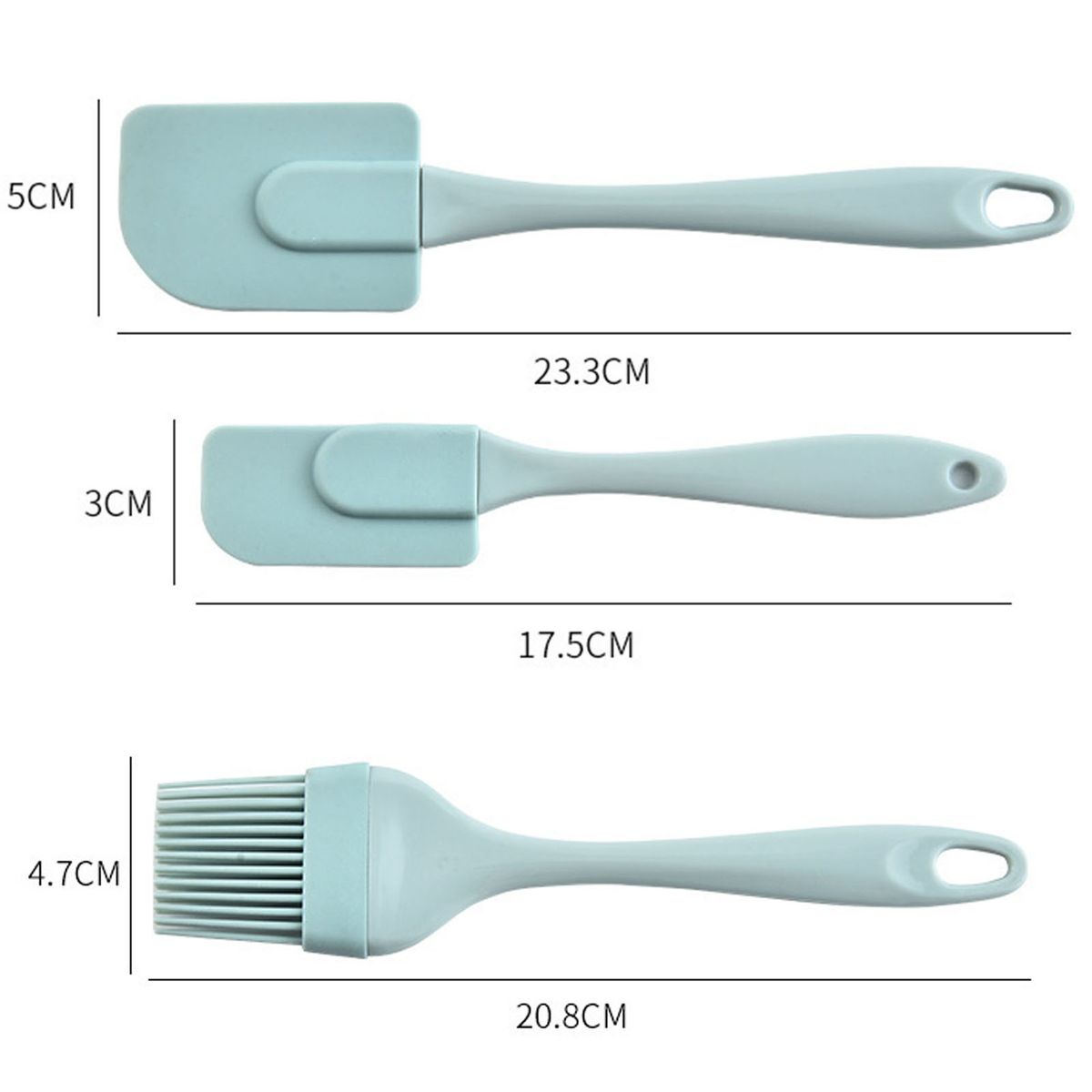 Different parts of this silicone scraper kit have different sizes.
