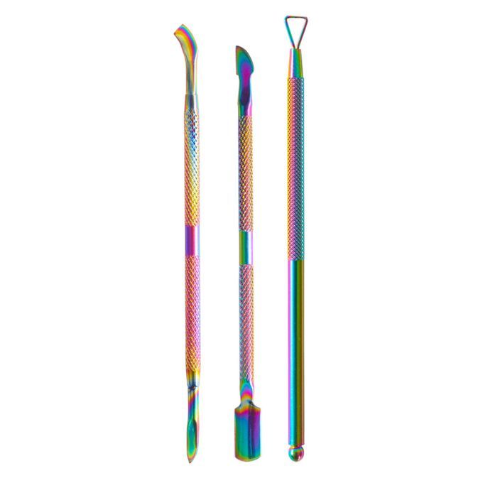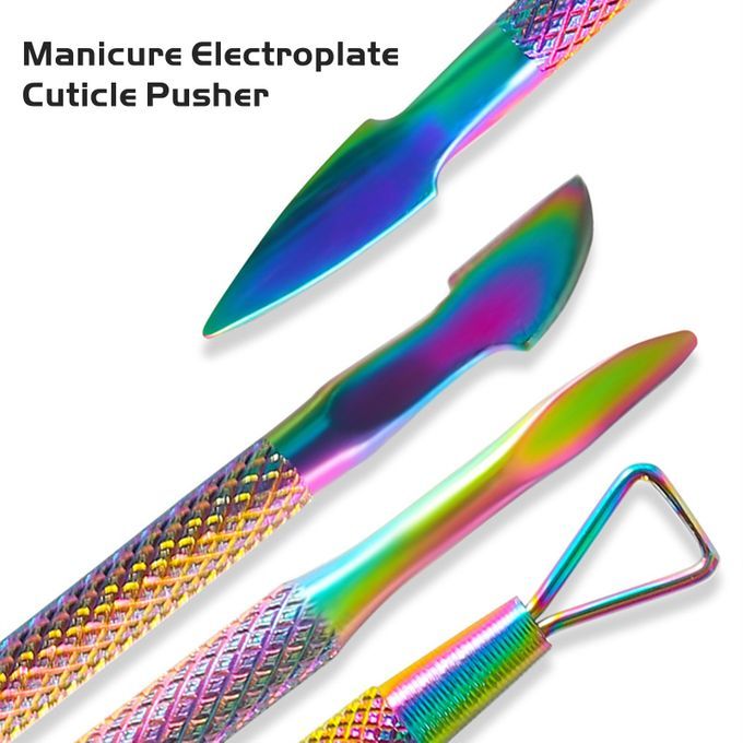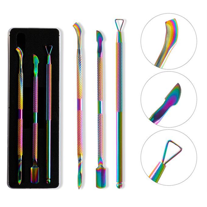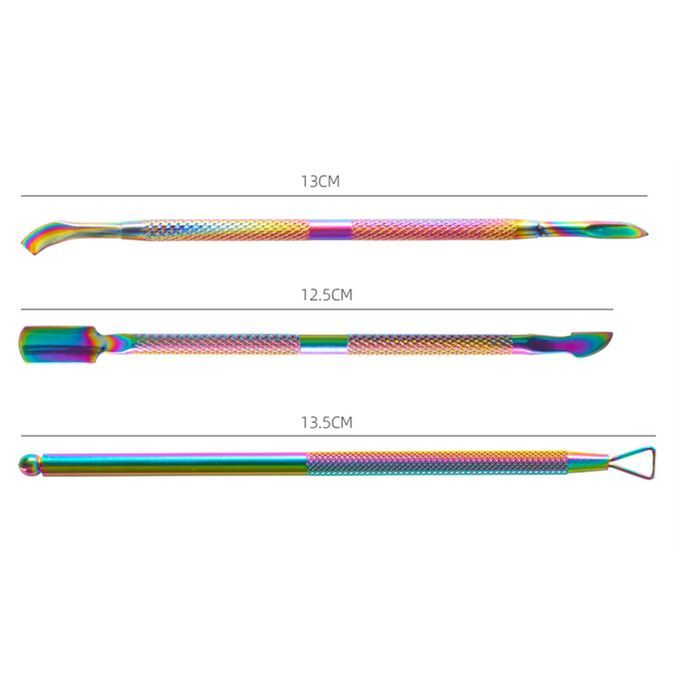 3Pcs stainless steel cuticle pusher set, double head dual use, push dead skin, remove nails, remove nail stains easily.