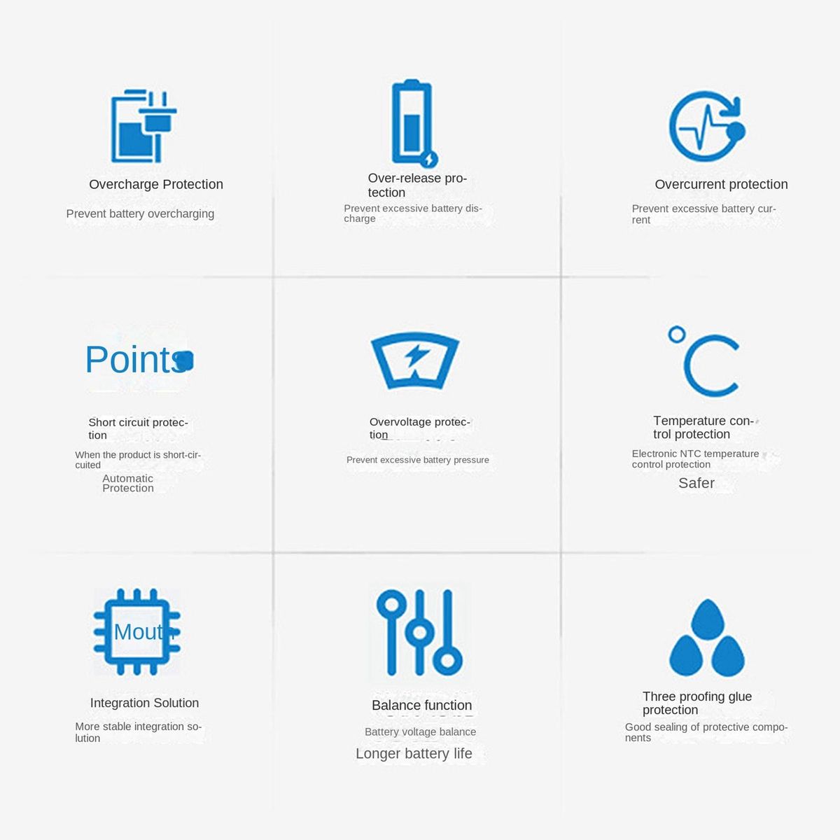 Scope of application: Protection board for scooter, drift car protection board, solar street light, LED protection board, motorcycle lithium battery protection board, tricycle power protection board, backup power lithium battery protection board