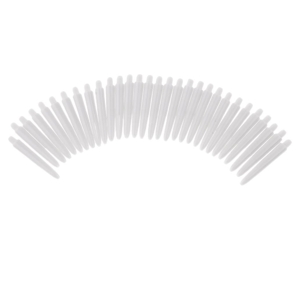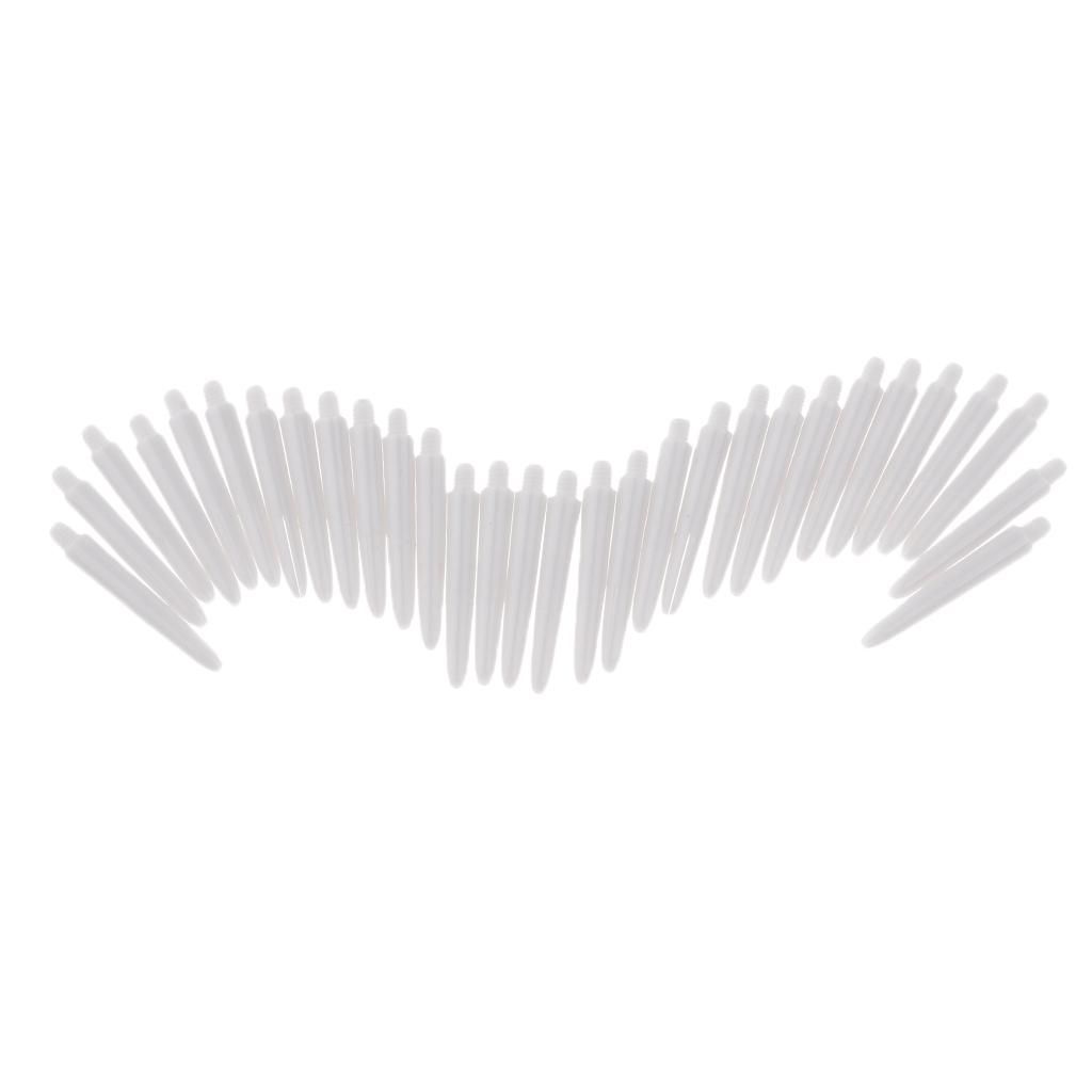 30 Pieces 100% 2BA Thread Dart Shafts SetPerfect for both steel tip and soft tip darts. UniversalLightweight and durable, high tenacity, easy to installLength: Approx. 35mm / 1.38 inch (Except Thread part)Material: Plastic