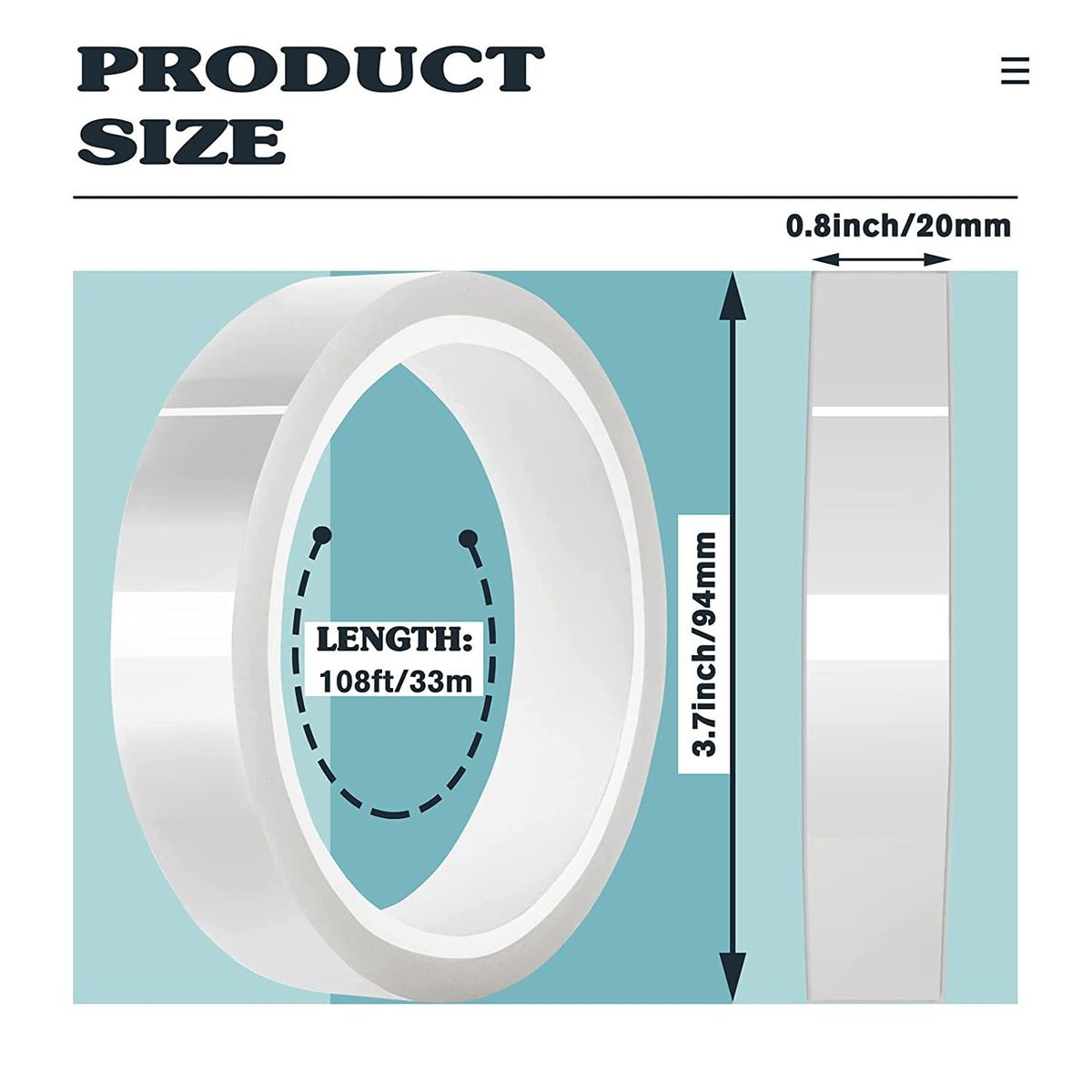 Features Width 20mm078inch Length 33m 108ft Heat resistance 250°C482℉Color Clear