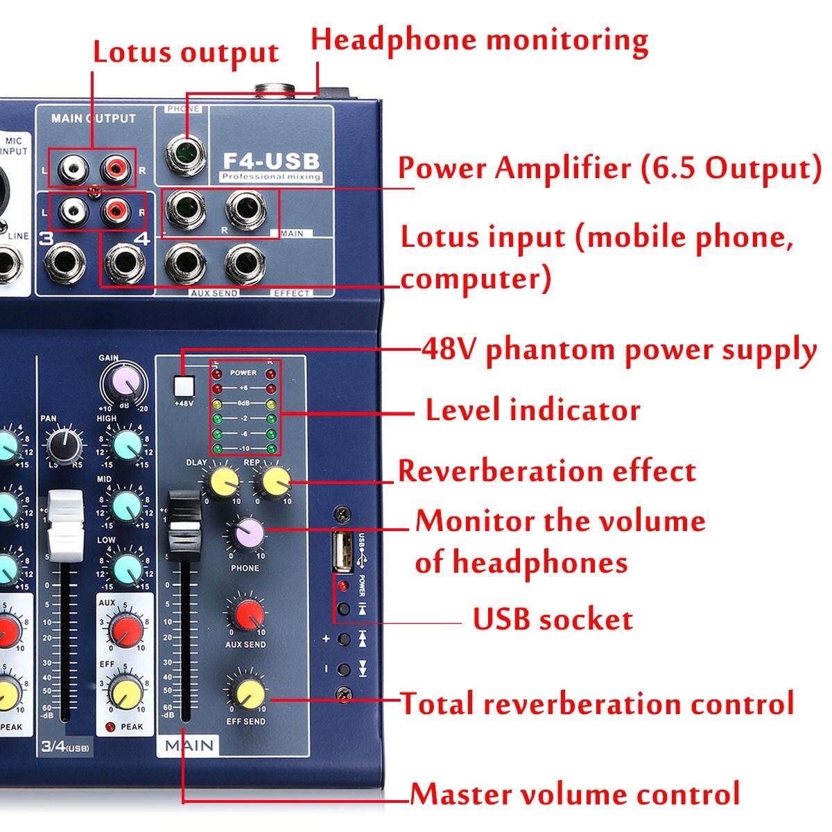 Name: 4 USB Portable Mixer Live Studio Audio Mixing Console