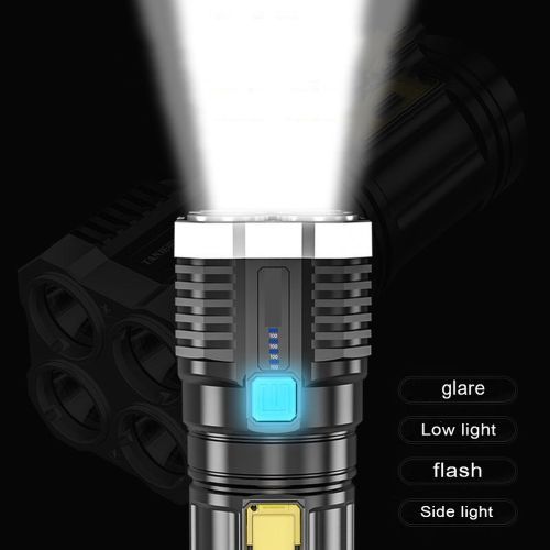 Le produit est fabrique en plastique ABS, qui est etanche a vie et presente de mauvaises performances d'etancheiteGroupe de lampes 4 coeurs 3030 + COBBatterie au lithium 18650 integree, 1200mahPoids net du produit 142g