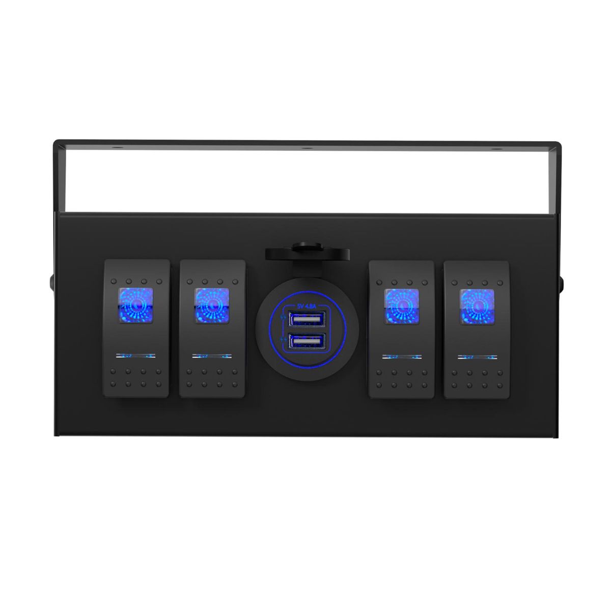 Buy 4 Gang Rocker Toggle Switch Box 4-way USB Quick Charger Blue Light Switch Dual USB 4.8A 12/24V Universal Multifunctional Mount Box for RV Vehicle Truck Trailer Yacht in Nigeria