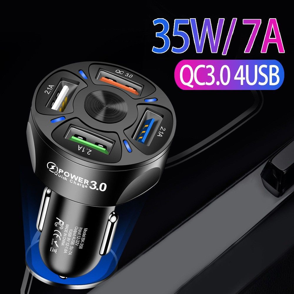 4-in-1 car charger adapter, 7A/35W output, quick charging, high charging conversion rate, convenient and time-saving.