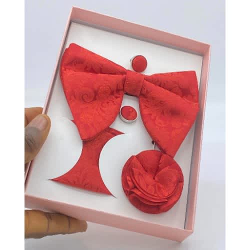 Buy 4-in-1 Classic Pattern Men's Red Bow Tie N Cufflinks in Nigeria