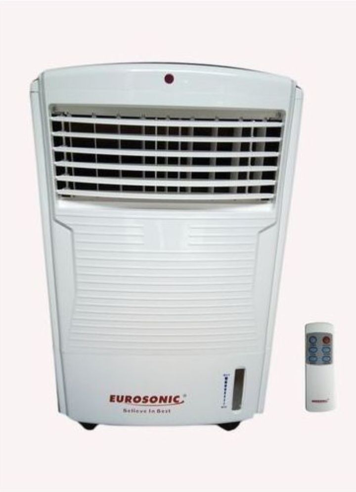 Featuring quiet operation, the cooler is suitable for night time use, and the easy fill dual tank can be filled with ice for hot days.