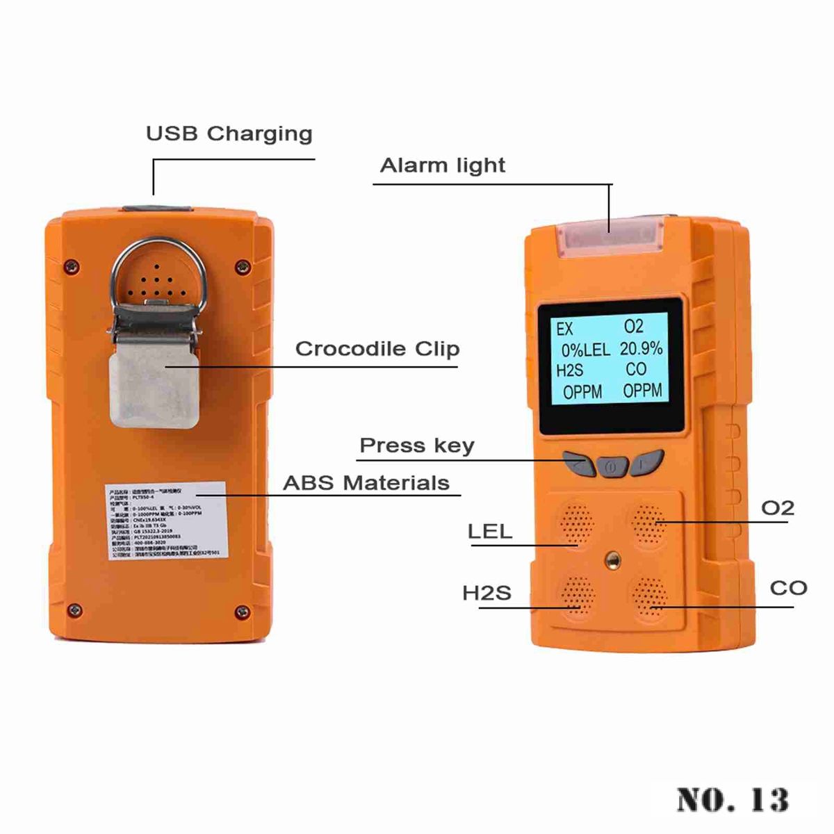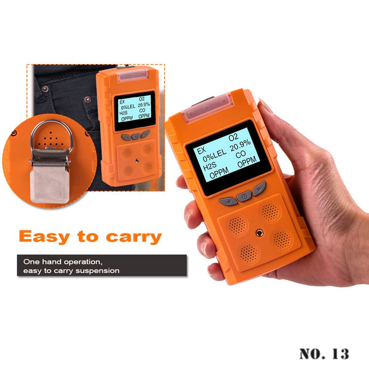 ▶Portable voice type multi gas detector is a safety device that can continuously detect the concentration of leaking gas. ▶It adopts advanced integrated circuit technology, embedded computer control, high-quality gas , with excellent sensitivity and repeatability. ▶It uses dot matrix LCD display to support Chinese-English interface and Chinese-English voice prompt, so that users can quickly understand the product and use and maintain it simply. ▶High-strength engineering plastics, good seismic resistance, high strength, high-tmospheric appearance and dust-proof, waterproof and explosion-proof function, etc. ▶The detector is widely used in petroleum, industry, envmental protection, metallurgy, refining, gas, bio medicine, agriculture, fire protection, Archaeology and other industries and places that need safety monitoring for toxicity and harmfulne, explosion prevention. The detector can effectively predict the concentration of dangerous gases and alarm, so as to ensure the safety of workers and production equipment. Technical parameter: Gas type: EX, H2S, CO, O2 EX Range: (0-100)%LEL; Low alarm: 20%LEL; High: 50%LEL; Resolutio: 1%LEL H2S Range: (0-100)ppm; Low alarm: 10ppm; High: 35ppm; Resolutio: 1ppm CO Range: (0-1000)ppm; Low alarm: 50ppm; High: 150ppm; Resolutio: 1ppm O2 Range: (0-30)%vol; Low alarm: 19.5%vol; High: 23.5%vol; Resolutio: 0.1%vol Precision: ≤±5%FS Response time: T