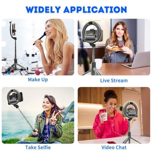 1. Adopts high quality LED beads, super bright, suitable for live broadcast, selfie, makeup, etc.2. Made of aluminum alloy, the shell has excellent heat dissipation performance, lightweight, durable and wear-resistant.3. Support warm white light, warm yellow light and white light adjustable, You can adjust as you want according to the scenes to get different shooting effects.4. Equipped with a mobile phone clip with a 360 & deg; adjustable metal tube, you can adjust it to get optimum angle.5. With an interface that diameter is 1.6cm at the bottom, which can mount onto tripod in same size.