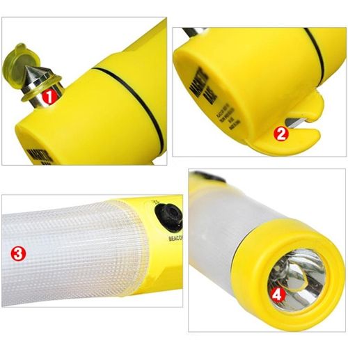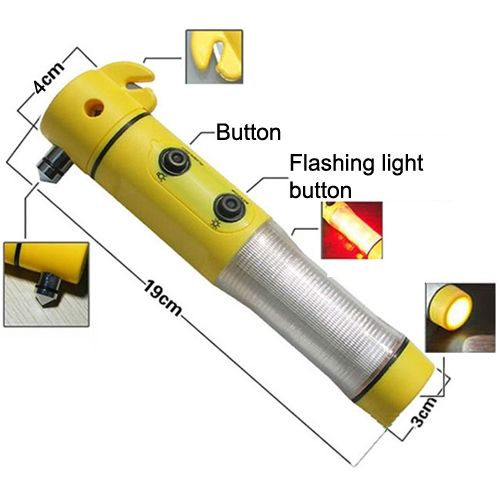 4 in 1 Multi Function Flashlight Alarm Emergency Hammer LED Flash Light For Auto-used(Yellow)
