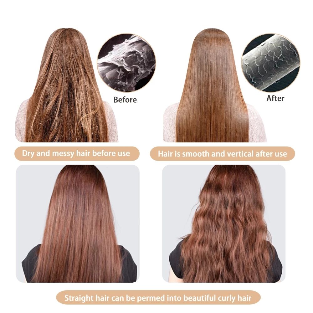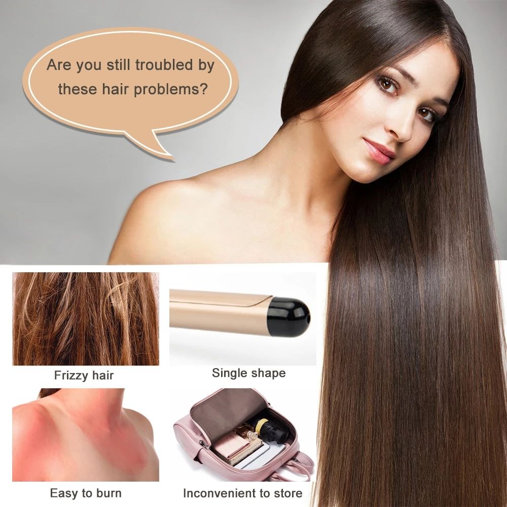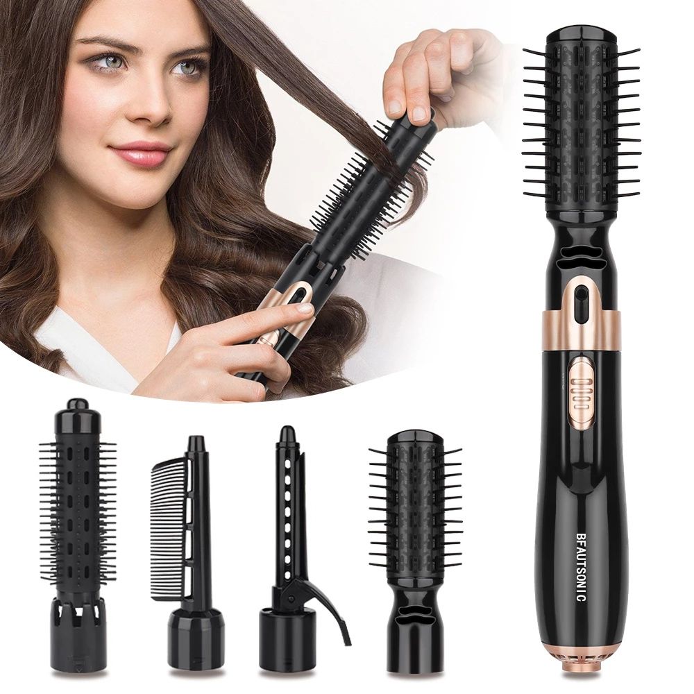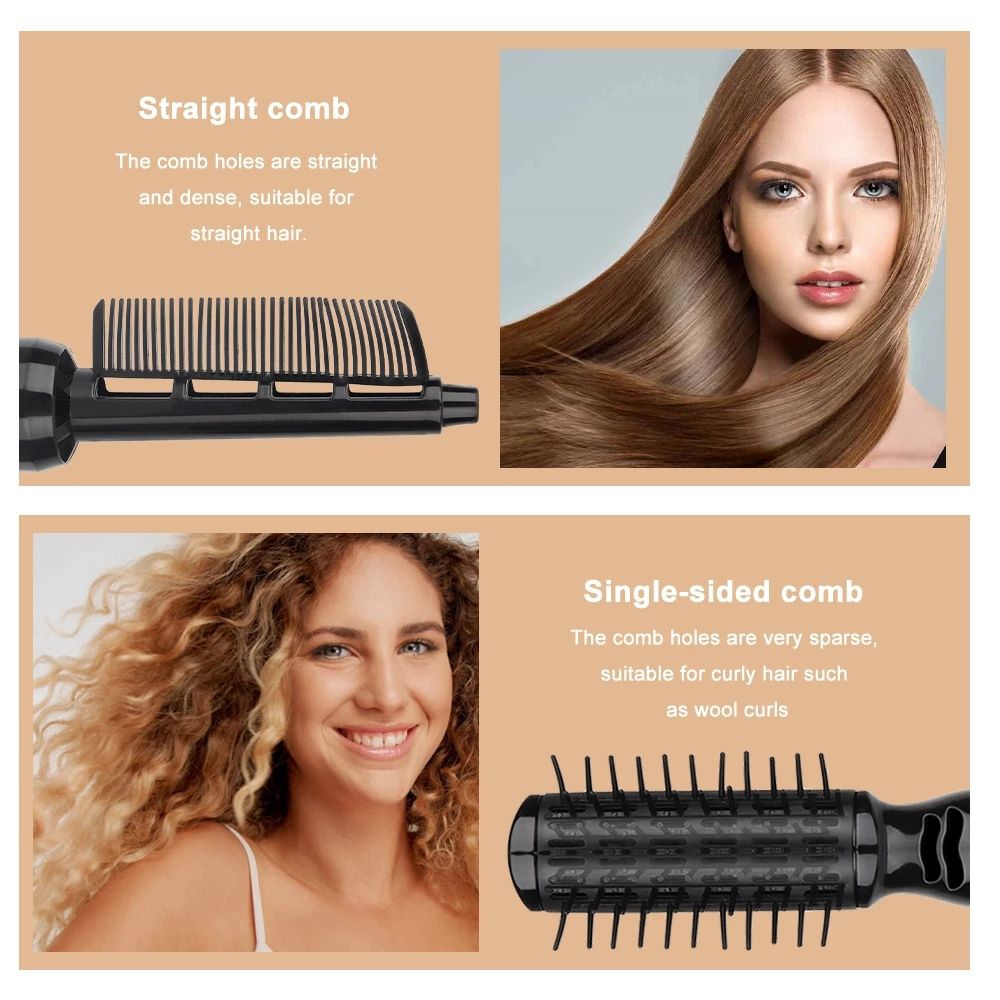 3. Multifunctional: hot air brush can be used for combing and drying hair; round brush for curling hair; small curling iron for making natural curling iron; flat comb and paddle brush for smoothing and straightening hair.