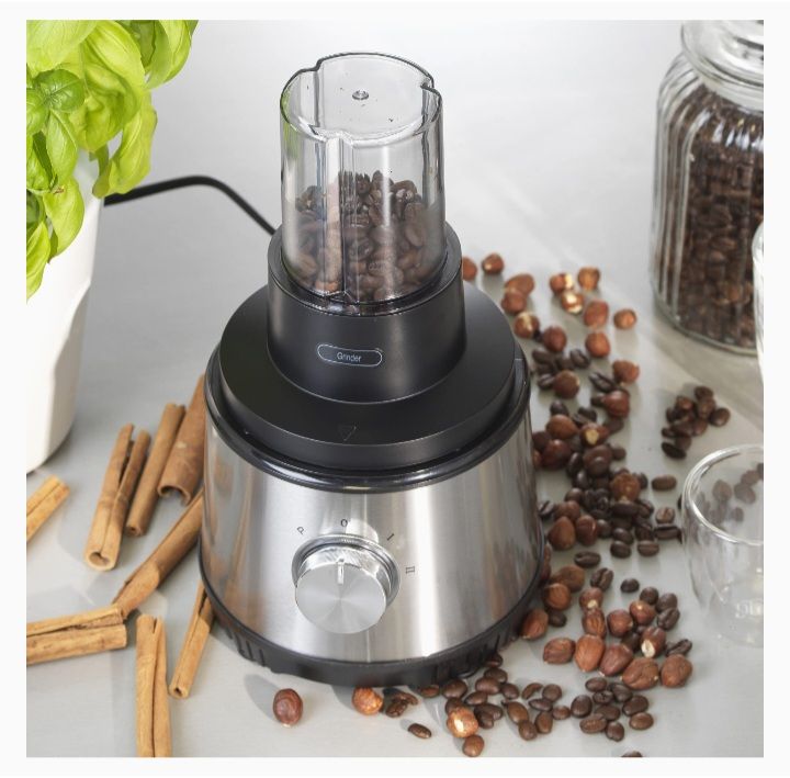 Mix healthy protein smoothies, squeeze delicious fruits and vegetables and grind fresh coffee beans with the 4-in-1 electric multifunction blender Petra.