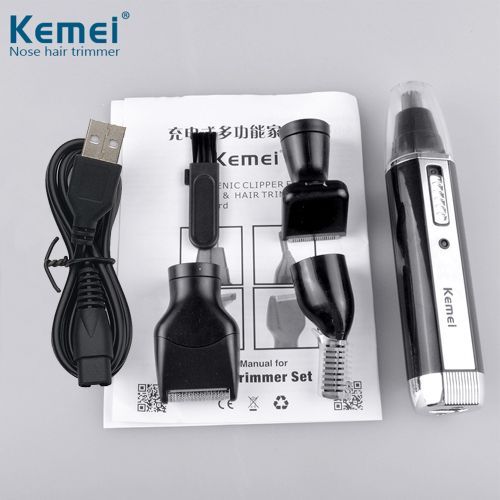 Kemei KM-6630 4 in 1 Nose Hair Trimmer for Men USB Rechargeable Eyebrow and Ear Hair Trimmer Electric Ear Hair Clipper Men Grooming Kit