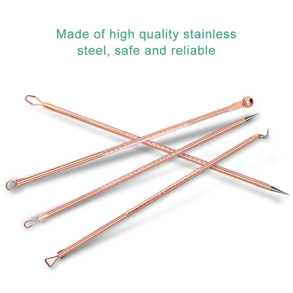 4 different style blackhead and comedone acne pimple extractor in different sizes and angles for extract blackheads/whiteheads and remove different sizes of pimples, zits, acnes, fat grains on your skin.