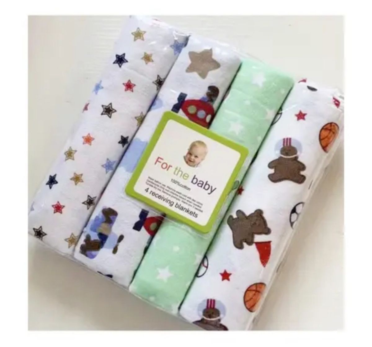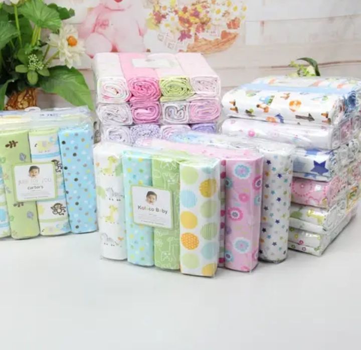 4-Pack Receiving Blankets are perfect for cuddling, sleeping, and playtime. Made of 100% Cotton, these blankets are soft and gentle on baby's skin, but durable and machine washable for everyday use.