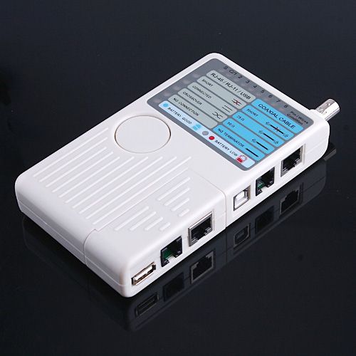 Tests 4 types of cables: RJ-45, RJ-11, USB and BNC.