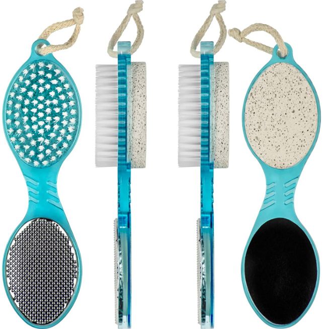 pedicure paddle which consist of foot brush, heel rasp, pumice stone and emery file. It cleans, remove dead skin and stimulate circulation. It cleanse, scrub and files. Quality Product at a Great Value! 4 in 1 Pedicure Brush Handle Includes Pumice Stone, Emery Board, Nail Cleaning Brush, and Professional Metal File, Can be Used Wet or Dry