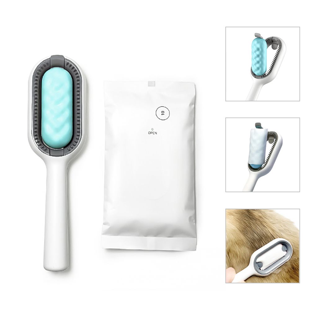 【Easy to Use】Come with 10pc pet disposable wipes, put the wipes on the massage stick and pet fur can be cleaned during hair removal.