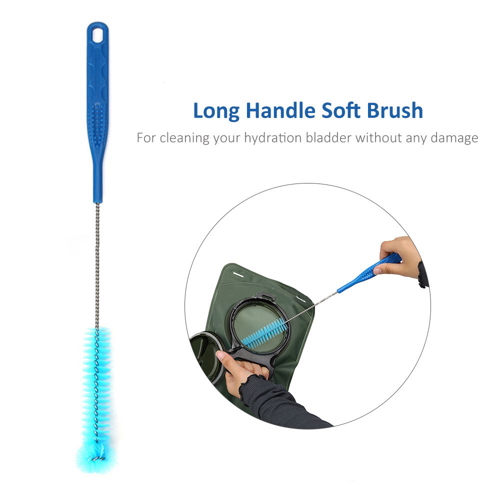 Long handle soft brush for cleaning the hydration bladder without any damage.