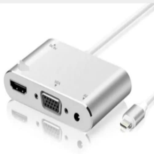MULTI-FUNCTIONAL:4 in 1 Lightning to HDMI/VGA/AV/3.5mm Audio Port Adapter. Compatible with devices (such as TV, projector, monitor) which is come with HDMI/VGA/AV/3.5mm Audio Port, Support both audio and video output or HDMI & VGA display simultaneously.