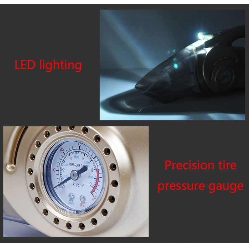 100% and high quality Features: 【SUPER 4 in 1 MULTIFUNCTIONAL VACUUM】- Function 1: automobile inflator, Function 2: Car Vacuum Cleaner, Function 3: Tire preure , Function 4: LED Lighting, four in one upgrade car vacuum cleaner 【POWERFUL & CYCLONIC SUCTION】Car vacuum cleaner 12V 120W can effectively absorb animal hair, snacks, juices and absorb any impurity that is moist or dry. 【MULTIPLE ATTACHMENTS】One-click dismount the vacuum cleaner hood, easily remove the vacuum cleaner filter, rinse with water, and can be reused for up to 2 years. With 5m power cord long enough to cover, a brush, a long suction nozzle, and a hose that can easily handle the garbage that is concealed in any cushion, button, or crack 【PORTABLE VACUUM CLEANER】14.6 X 6 X 4.7 inches Compact design makes it easy to operate; provides a portable box for each part of the car's vacuum cleaner for storage in every compartment of the car 【CAR AIR COMPRESSOR】Tire compreor pump with backlight digital display, certified accurate & calibrated specification: Color:gold Material: ABS Note: Please allow 0-1cm error due to manual measurement. pls make sure you do not mind before you bid. Due to the difference between different monitors, the picture may not reflect the actual color of the item. Thank you Package includes: 1x4 IN 1 CAR VACUUM CLEANER