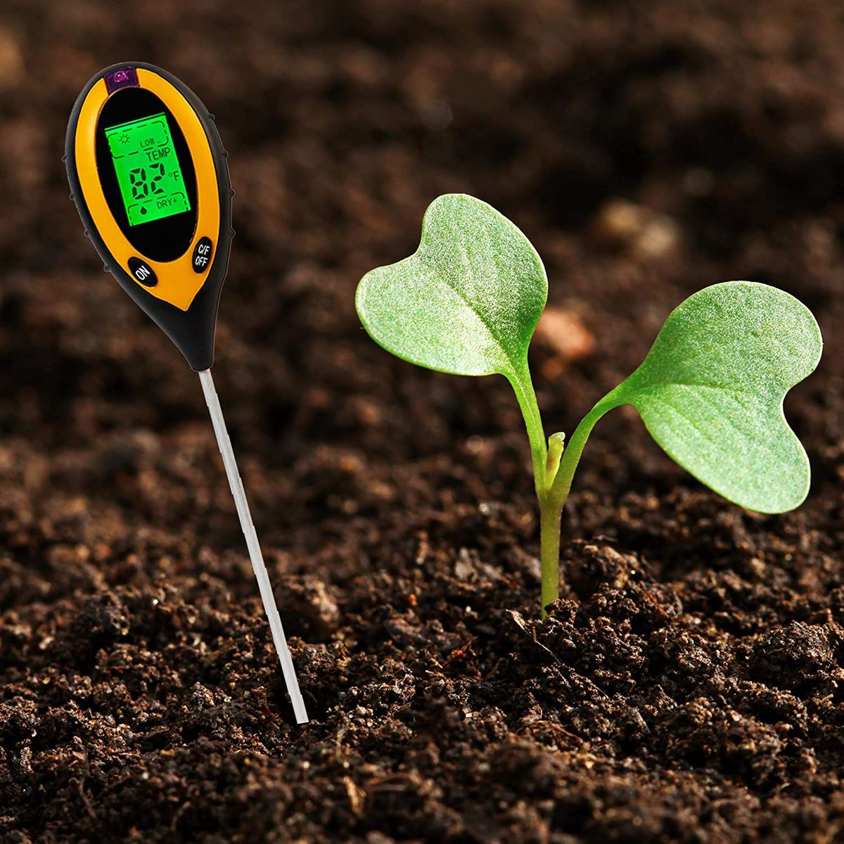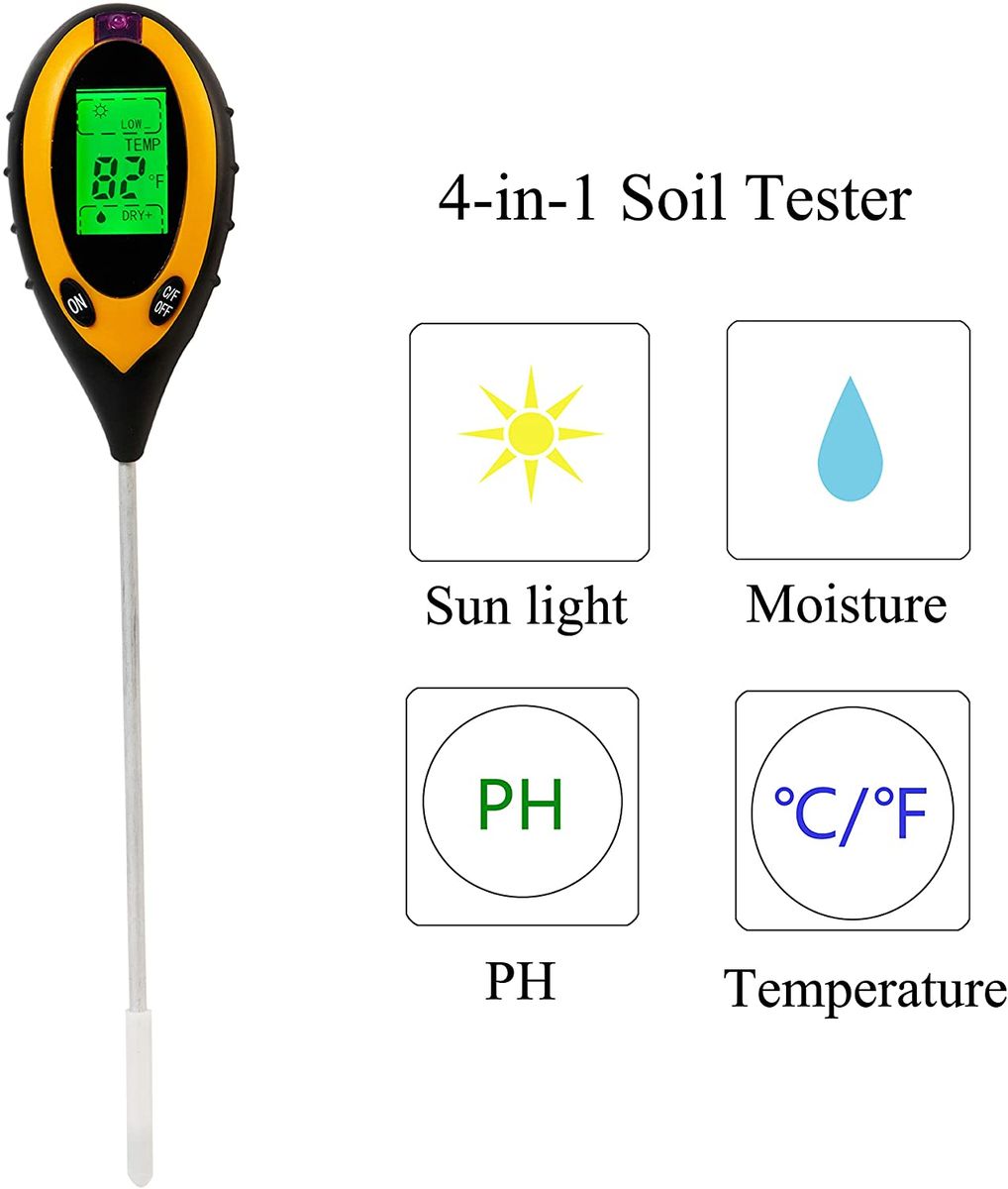 PH, Moisture, Temperature and Sunlight Intensity 4 in 1 Function: This soil pH meter can test soil moisture(5 levels), temperature -9 to 50 degree C (16°F to 122°F), PH acidity(3.5 to 9.0) and sunlight intensity ( 9 levels ).