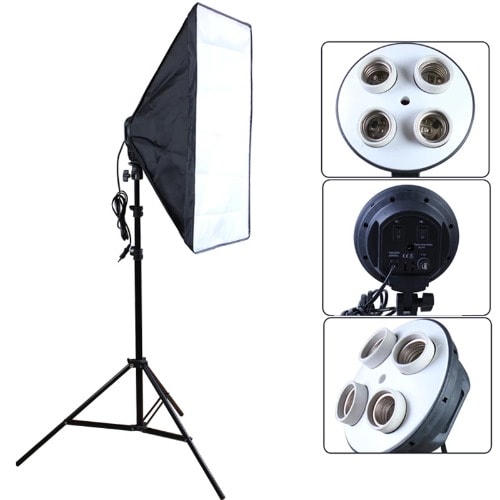 This soft box set comes with a 4-lamp holder.