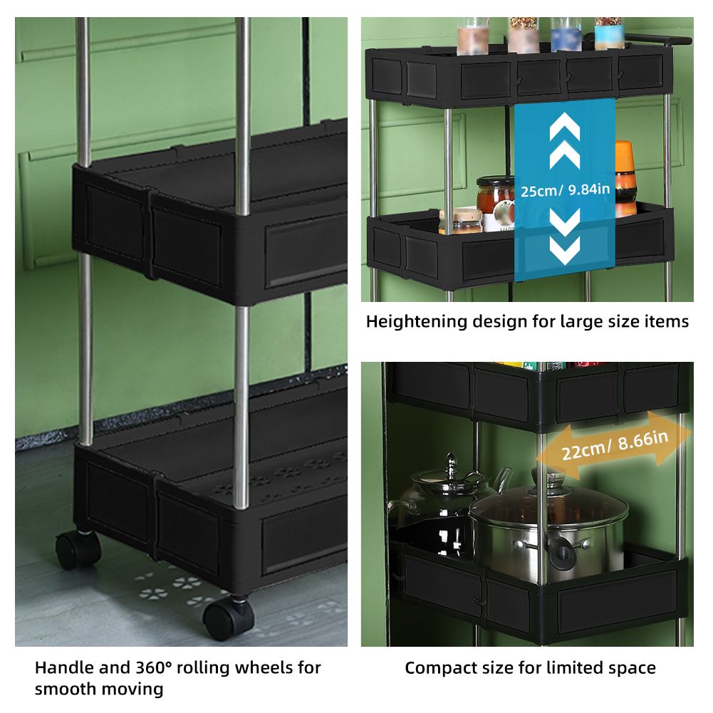 [WIDE APPLICATION] This practical cart can be widely used in any situation, like kitchen, living room, bathroom, bedroom, office, etc. Or you can also use it as a mobile food cart at the party.