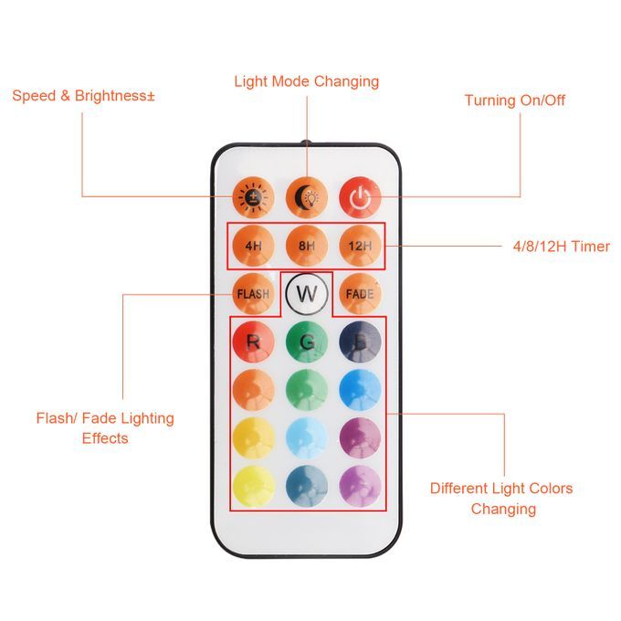 Flexible remote controller designed and line controller for better use experience, diverse lighting effects changd as you like, dimmable and spped adjustable, nice 3 levels timer setting for your needed.
