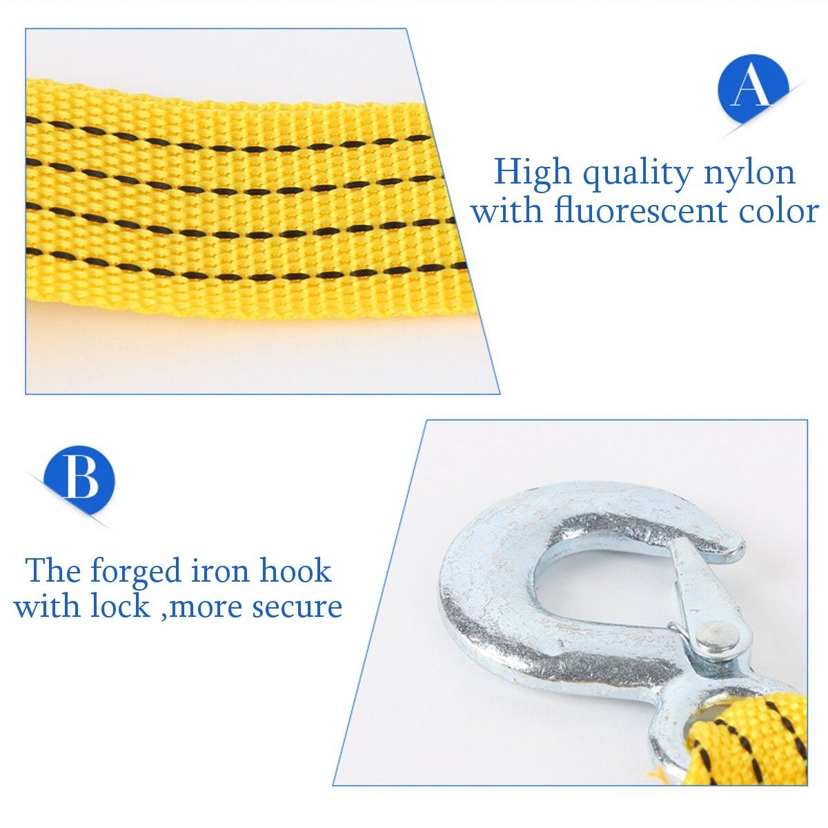 4 Meters 3Tons Car Tow Cable Emergency Trailer Rope With 2 Anti-Slip Hooks