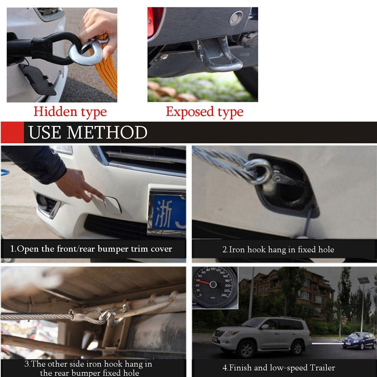 -The forged hooks with safety latch can prevent it from falling off the car and make it easier to take off or put on.