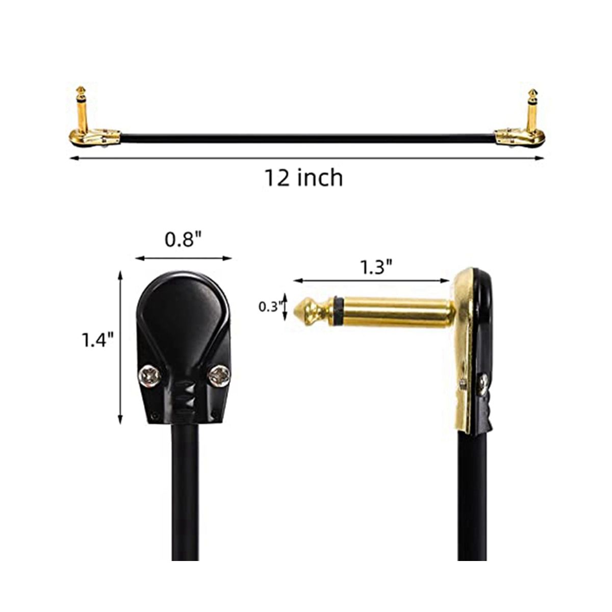 4 packs of guitar patch cables, each one measures 12 inches which a secure connection in any instrument, pedal, or amp . Such as Acoustic Guitar, Electric Guitar, Keyboard, , Pedal Effects, Amplifier, Mixing Board, Speaker , Studio Harmonizers, and other Unbalanced Instrument Cable Applications.