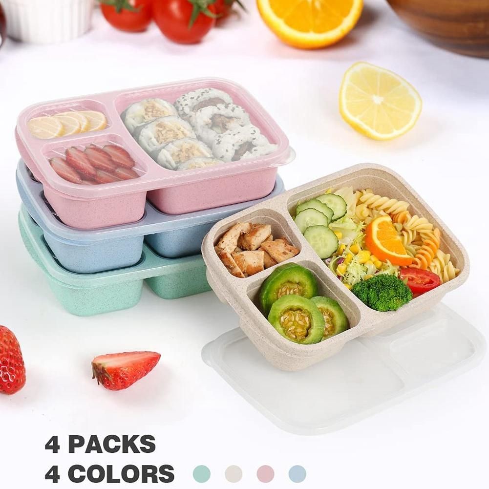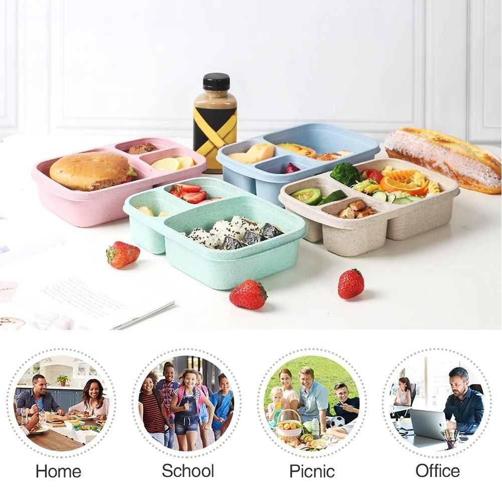 4 Pack Bento Lunch Box,3-Compartment Meal Prep[Safe and reusable] The wheat straw bento box is made of durable, high-quality, and 100% BPA-free material, can be used many times, please use our rice husk bento boxes instead of disposable lunch boxes to protect the environment