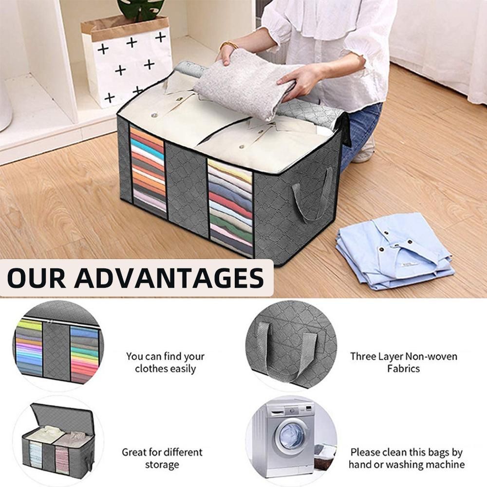 Buy 4 Pack Large Capacity Foldable Clothes Storage Bag Organizer with Clear Window,Reinforced Handle Thick Fabric for Comforters, Blankets, Bedding, Clothes with Sturdy Zipper (Grey) in Nigeria