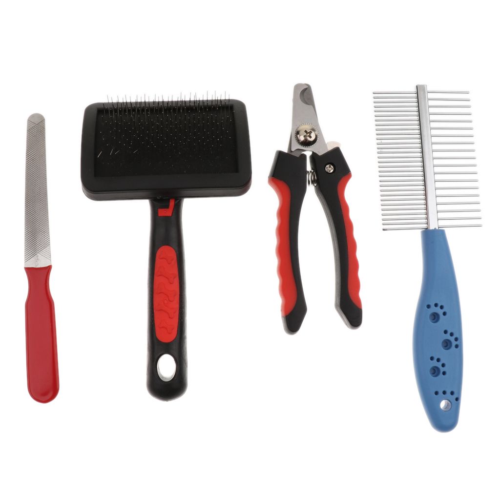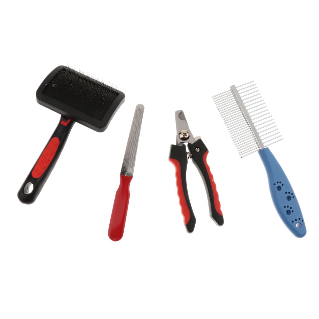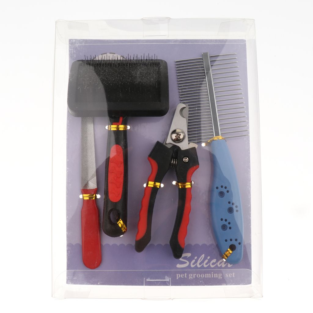 Pet dog cat hair grooming comb and nails trimming combo set, pet care needs.