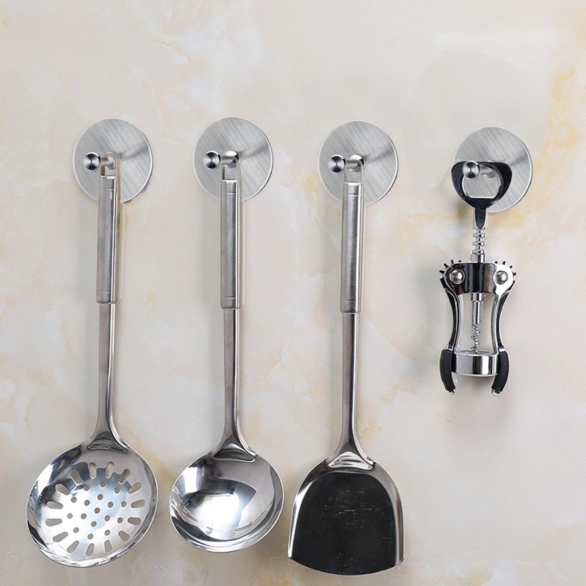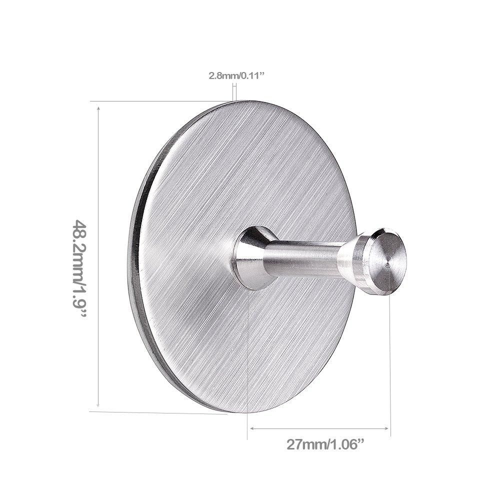4 Packs Hangers Stainless Steel Waterproof Robe TowelHEAVY DUTY ADHESIVE HOOKS- Size:1.9 inch * 1.9 inch * 1.17 inch. Super powerful hooks can hold up to 15lbs on wall