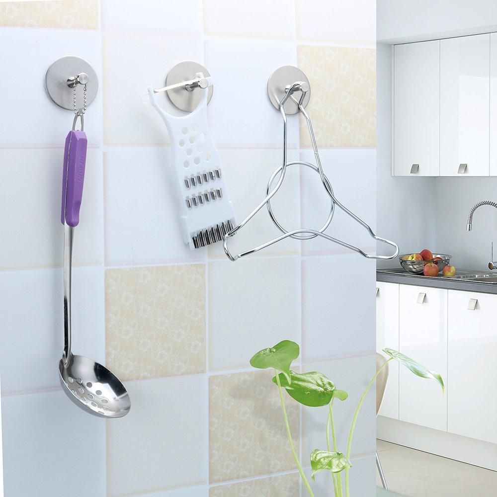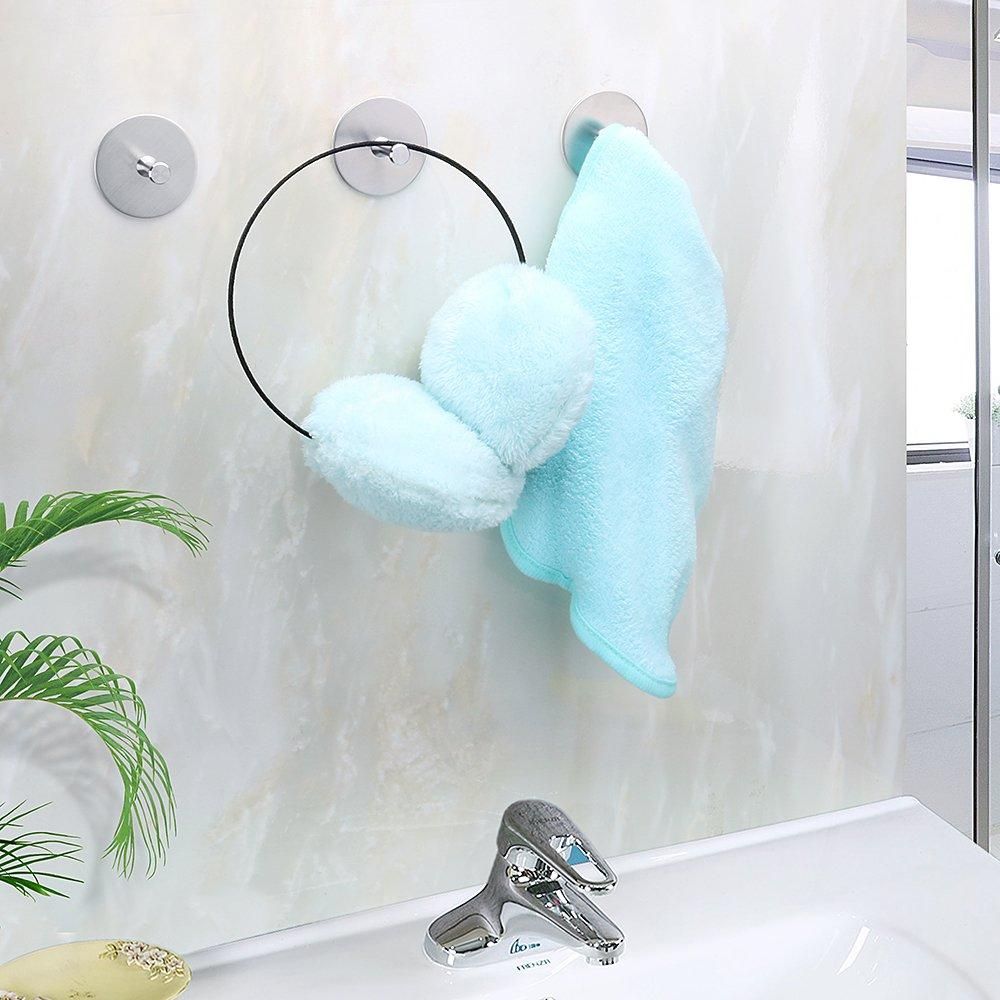 WIDELY APPLICATION - Great for hanging shower and bath accessories, can hold umbrellas, scarves,towels, robes, bags, coats, keys, purses and baseball caps,dog leashes etc.Can be applied to a variety of smooth walls, such as ceramic tile, wood, glasses, metal surface, etc. Paint wall is not available it might damage your paint.