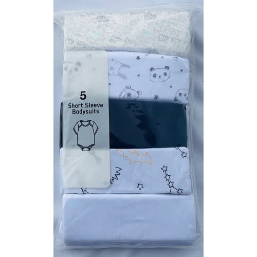 Bodysuits are made of 100% cotton for the softest touch on your baby's gentle skin. Bodysuits are essential to any baby's wardrobe, and these bodysuits are so comfortable that they can be used as underwear or even on their own. Assorted with printed designs, sayings, and prints; available in boy and girl designs and fits up to 12 months.