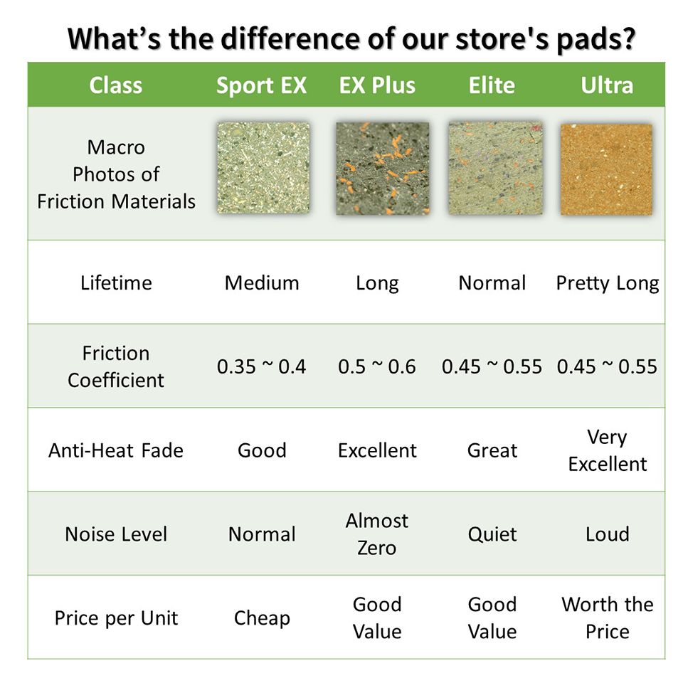 A ceramic brake pad is a heavy duty brake pad that has been gaining a lot of popularity in the last couple of years. The ceramic materials are the composition of porcelain and clay. These pads are very durable and smooth gripping capability. The most amazing fact is it works very silently.The Elite ceramic pads will resistant 300 Celsius without lost braking power. But its Therming Diipine Speed is Slower than our EX Plus Semi-metallic pads.Now, our Elite Cla Ceramic pads presented in purple color. ---Alpha Cycling, Terry Zhang