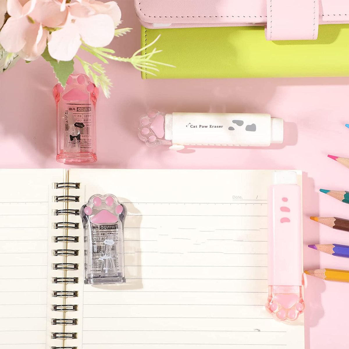 Cute Paw Design: the school supplies sharpener and erasers are designed with cute paw shapes, paws look transparent, with pink paws meat pad, looks cute, suitable for people who love cats and animals