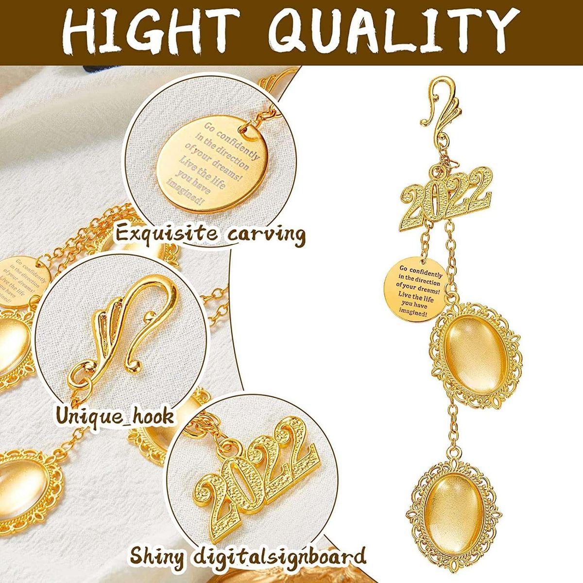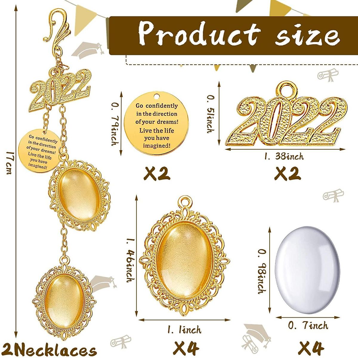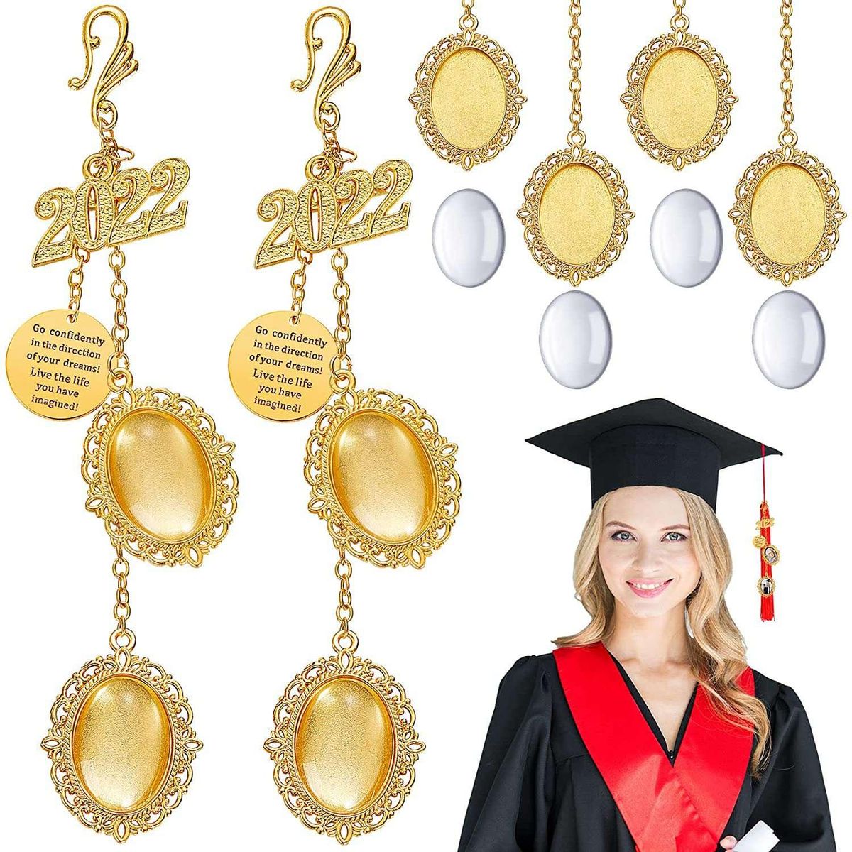 Inspirational Words: our inspirational 2022 graduation cap charm are printed with inspirational words, when you feel depressed in daily life, you can take a look at our pendant, the motivational words will keep you motivated.