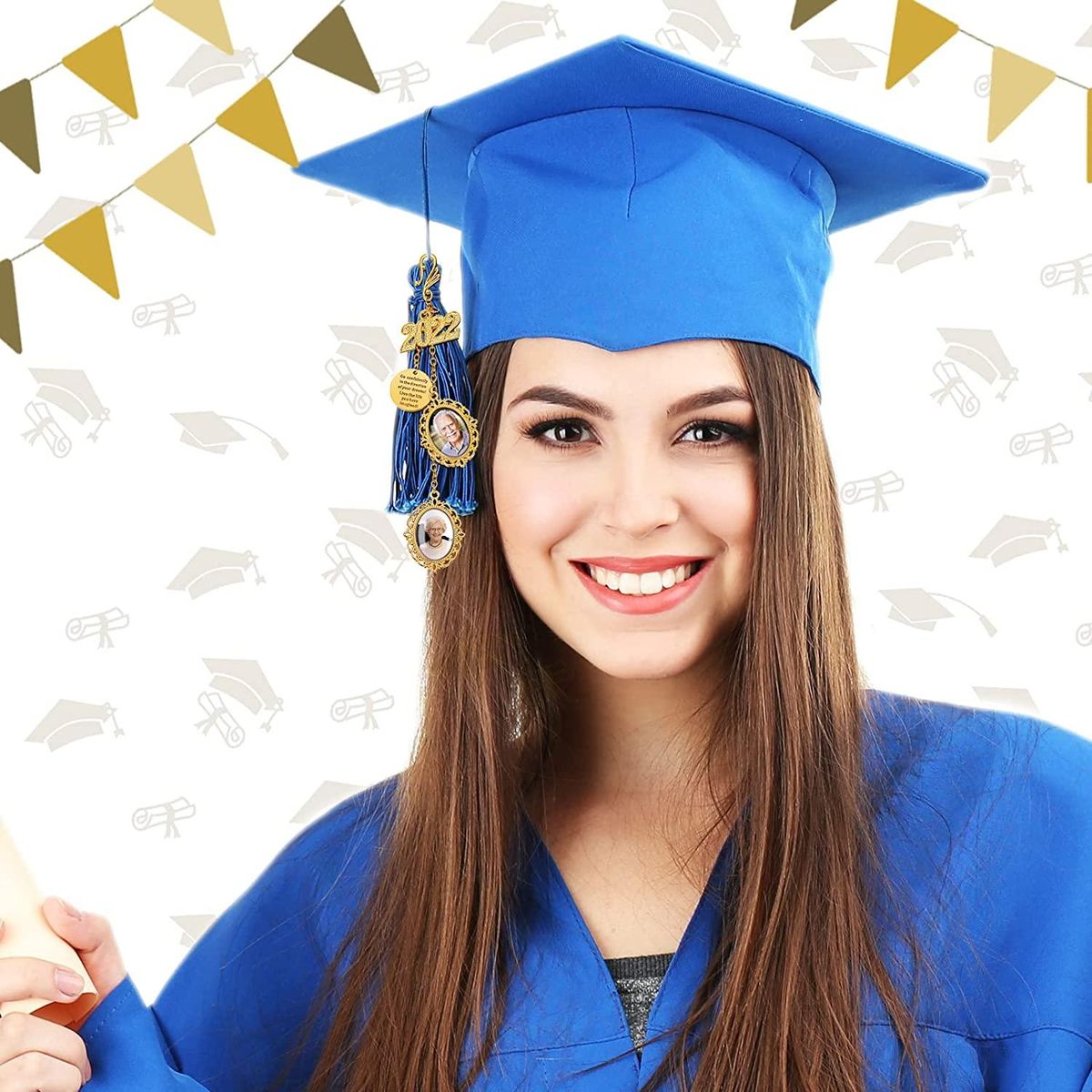 Charm Photo Pendant: the graduation cap memorial photo chain can hold your picture in approx. 2.5 cm/ 1 inch, so you can put the photos you like to the photo frame, and it is like graduation day, they are involved.