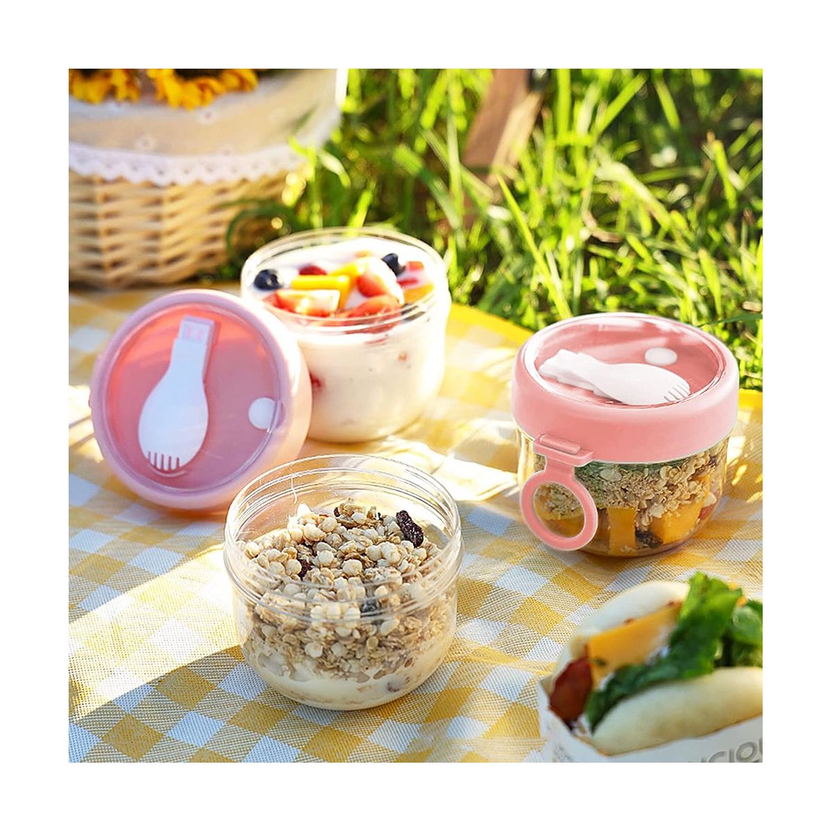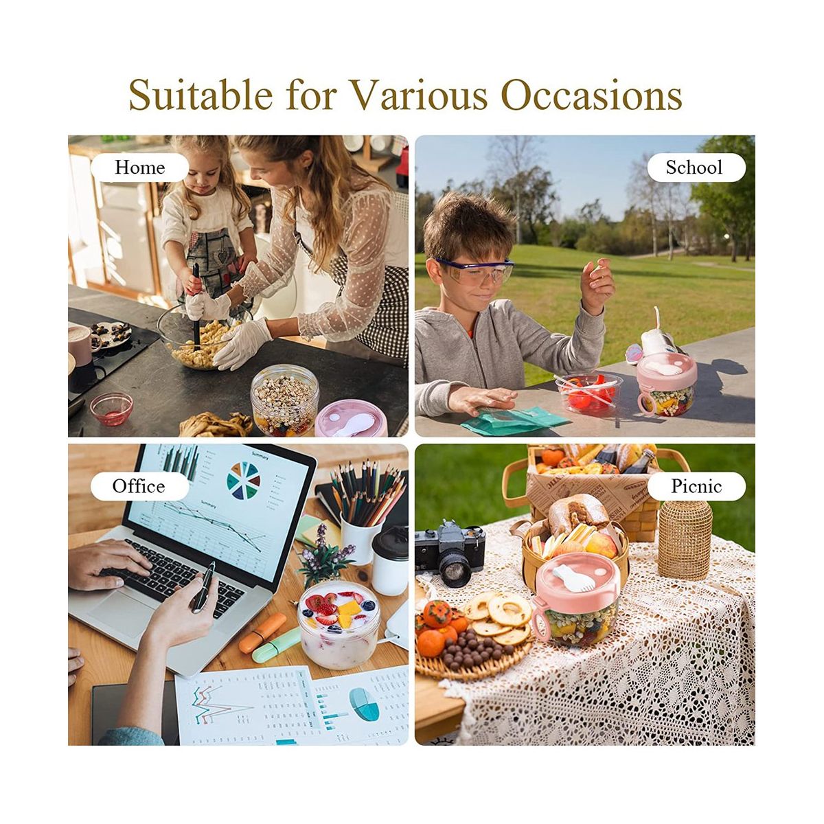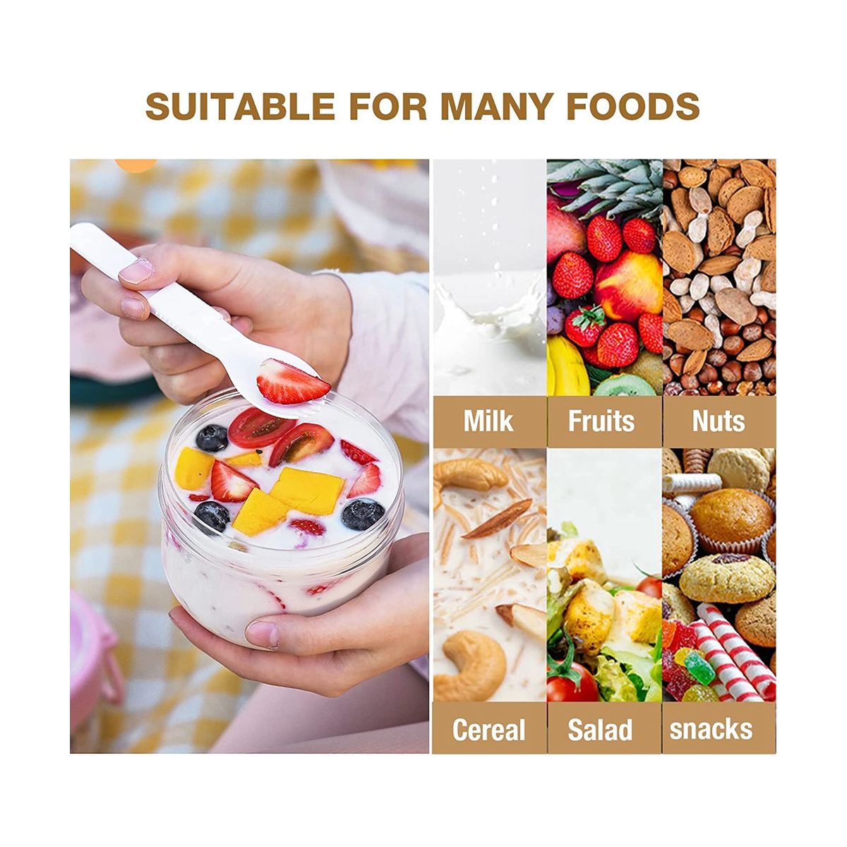Leakproof and Easy Use: our yogurt container adopts a leakproof lid to avoid leakage, with easy to open air hole and foldable spoons, bringing convenience in using process, and the loop handle design and anti bottom convenient to use
